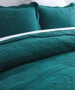 Colcha de cama de algodón verde ENASAL Queen Size, 3 piezas