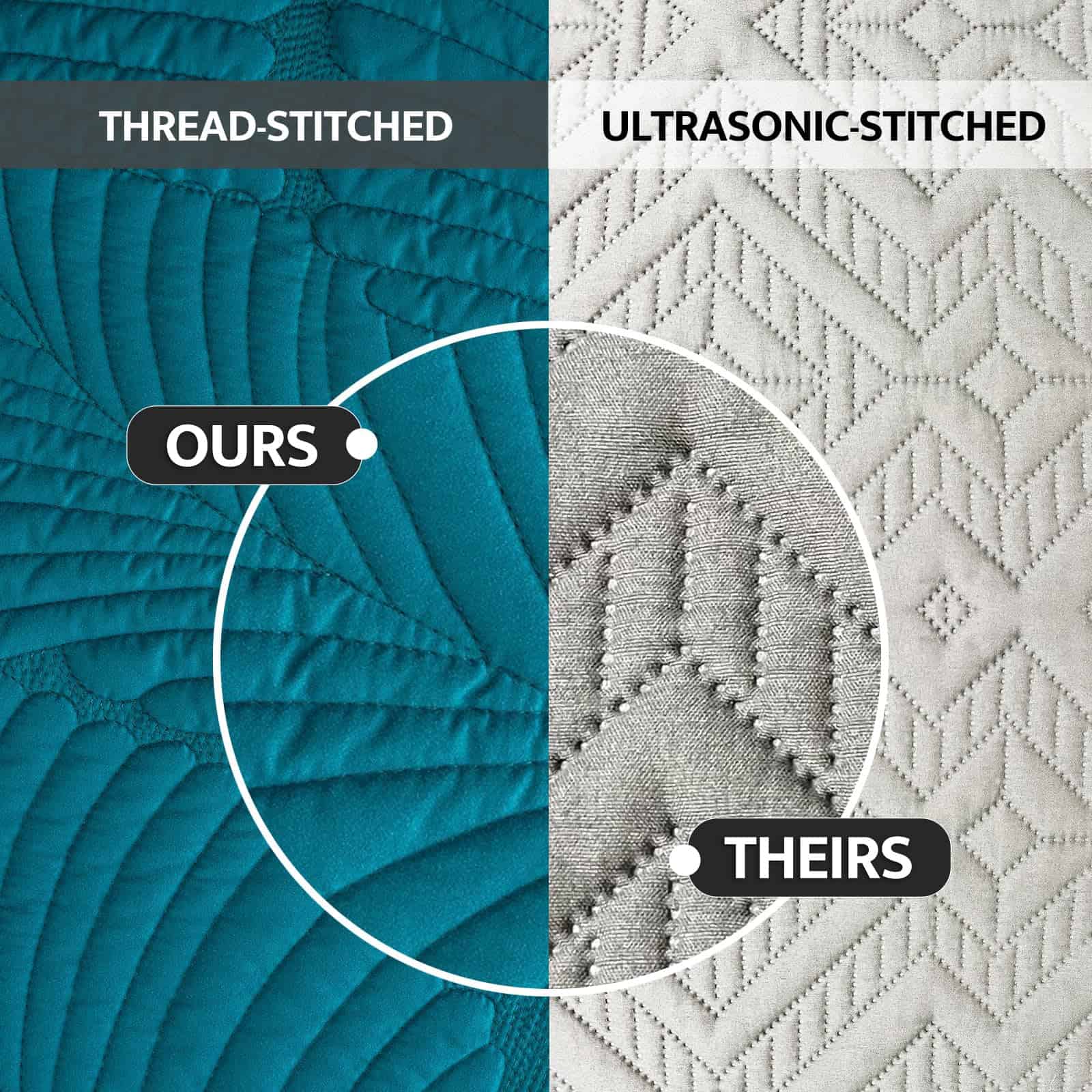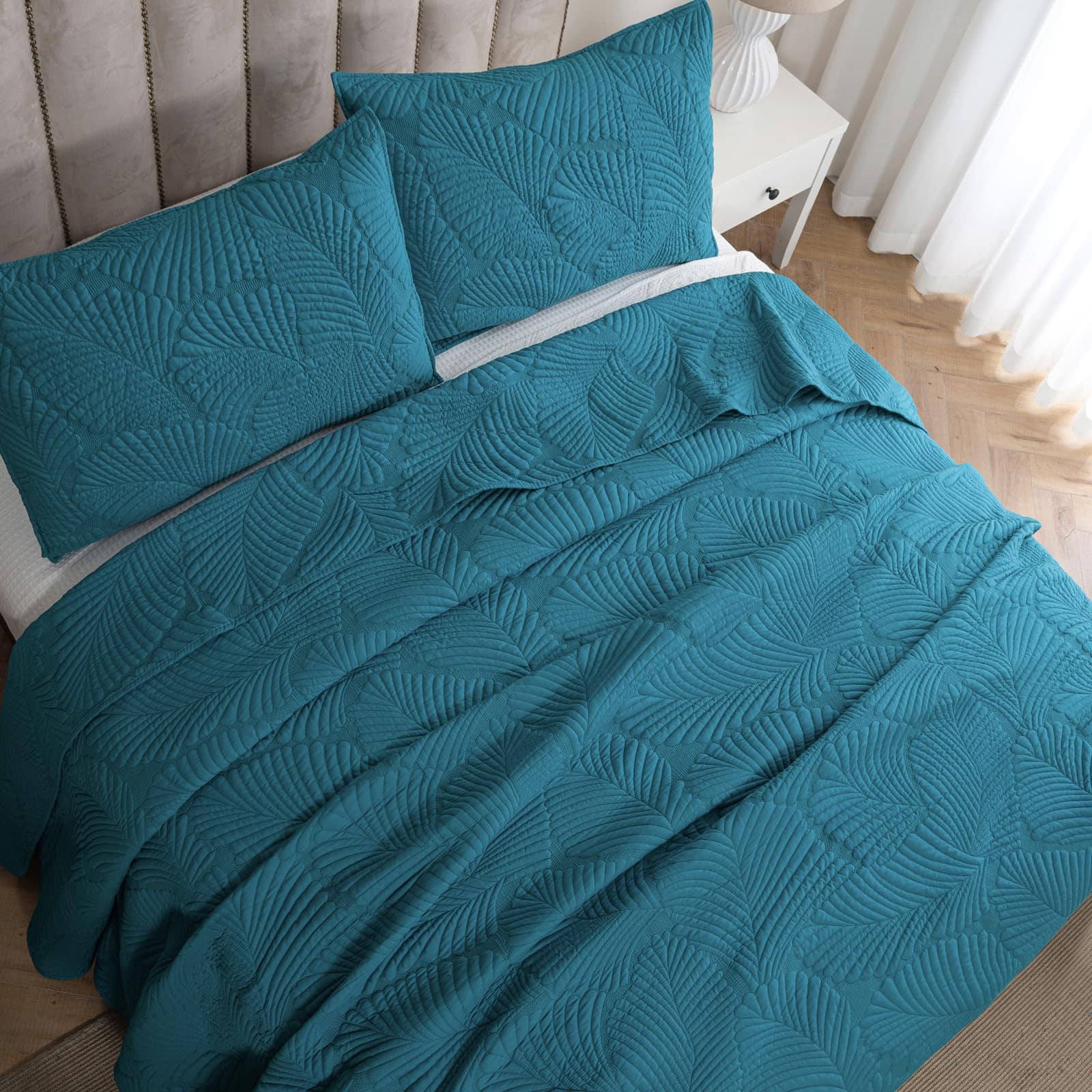 1. Tela de calidad premium: Fabricada con tela de alta densidad de 90 GSM, esta colcha ofrece un patrón texturizado de alto relieve y una sensación cómoda para un sueño reparador.