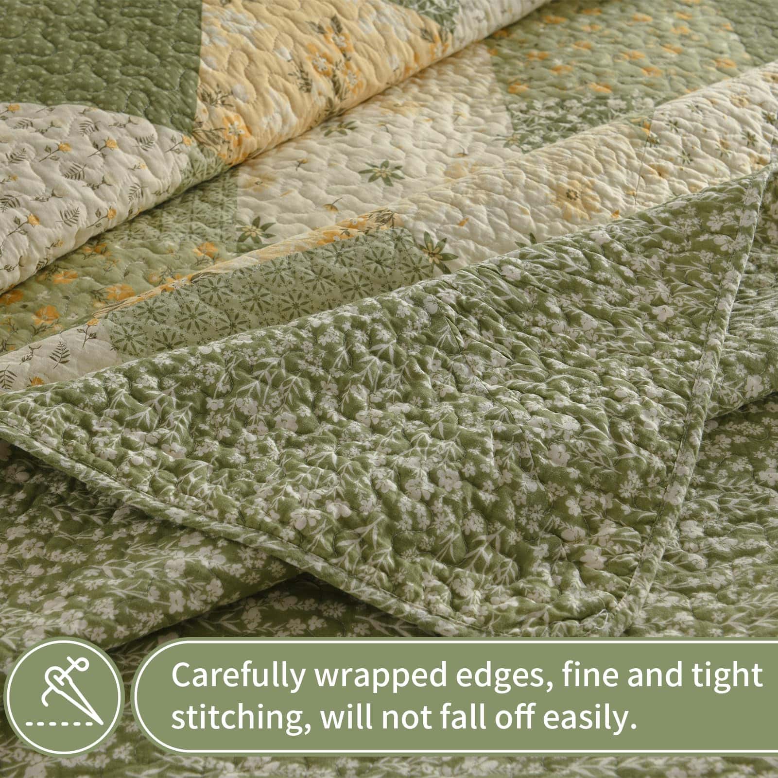 3. Diseño de Patchwork Floral – Diseñado con patrones florales variados y coordinados en colores, esta colcha reversible crea un aspecto vintage, fresco y rústico para tu habitación. Embellece el rincón favorito de tu casa con esta impresionante colcha de verano.