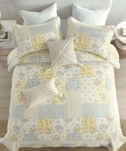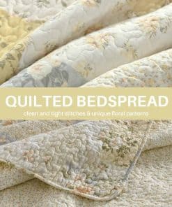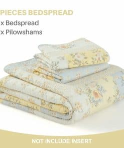 Colcha de Cama FineStichery King 120″x120″ – Colchas de Cama 100% algodón extragrandes, Colchas Reversibles de Flores ligeras, Juegos de Cubrecamas XL de Estilo Granja con Fundas de Almohada, Amarillo. Verdadero Confort Extragrande – La colcha extragrande de tamaño king (120″x120″) es ideal para camas extra grandes o altas, incluyendo camas con somieres altos o colchones gruesos y camas ajustables divididas. El juego de colchas incluye dos fundas de almohada a juego (20″x36″). Algodón Natural Premium – Esta colcha de tamaño king está hecha de 100% algodón percal, que es suave, transpirable e hipoalergénico. Ligero y duradero, esta colcha es amigable para niños o mascotas y es un regalo ideal para quienes duermen calientes. Colcha Reversible – Telas delicadas con motivos florales y de gingham en tonos beige suave, gris claro y blanco crema se disponen en un patrón de piso clásico en algodón percal denso para mayor resistencia y durabilidad, trayendo la belleza de flores en plena floración a tu dormitorio con un toque de estilo de granja. Versátil – Esta colcha para todo el año es un excelente cobertor para la cama por sí sola o un edredón extragrande en climas más cálidos, una capa decorativa adicional en climas más fríos. El acolchado suave y perfectamente cosido garantiza que este juego de colchas durará toda la temporada. Certificado de Seguridad – Este juego de cubrecamas tiene la certificación Standard 100 by OEKO-TEX por cumplir con los criterios de prueba más altos para sustancias químicas dañinas. Cuidado Fácil – Colcha de ropa de cama floral suave, lavable a máquina en agua fría y secar a baja temperatura. ¡No usar lejía!