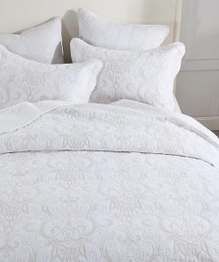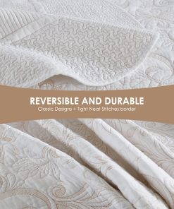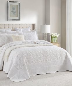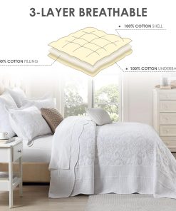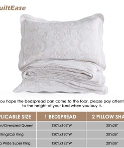 Colcha de Cama QuiltEase Oversized King – 120″ Lx128 W Extra Amplia – Juego de Colcha de Bordado Ligera 100% Algodón – Edredón Super King Reversible – 3 Piezas – Blanco. Esta colcha de cama de tamaño extra amplio es perfecta para una cama king size más grande y más alta, colchones gruesos o camas ajustables divididas. La colcha extragrande es lo suficientemente grande como para llegar hasta el suelo, con un borde hermoso que le otorga una caída elegante, eliminando la necesidad de un faldón de cama. La tela y el relleno de esta colcha están hechos de 100% algodón natural, lo que la hace más suave, saludable, transpirable y amigable con la piel. Es una excelente elección para personas con constitución alérgica o que tienden a sudar más al dormir. El diseño de bordado floral con un elegante borde aporta un aspecto lujoso y elegante a la decoración de su dormitorio, siendo reversible con diferentes patrones y colores en ambos lados. Es ideal para decorar y realzar la habitación principal o de invitados. Las costuras limpias y ajustadas garantizan un uso a largo plazo. Puede usarse solo o con manta o edredón, como cubierta de cama principal o como una de las piezas de capas. Este juego de colcha de cama extra grande de súper rey de 3 piezas incluye 1 colcha de 120″L x 128″W y 2 fundas de almohada de 20″ x 36″. El diseño de tres capas y el relleno de algodón 100% en el interior hacen que este juego de colcha acolchado sea ligero pero cálido, adecuado para todas las estaciones del año. Se puede usar como juegos de colcha, juegos de colcha extragrandes, juego de colcha, colcha, cubierta de cama y juego de edredón. Para un cuidado óptimo, lave la colcha por separado en agua fría y seque a baja temperatura. Evite usar lejía. Si tiene mascotas, esta colcha lavable es una excelente elección, ya que se puede limpiar fácilmente para eliminar cualquier cabello o mancha de mascotas.