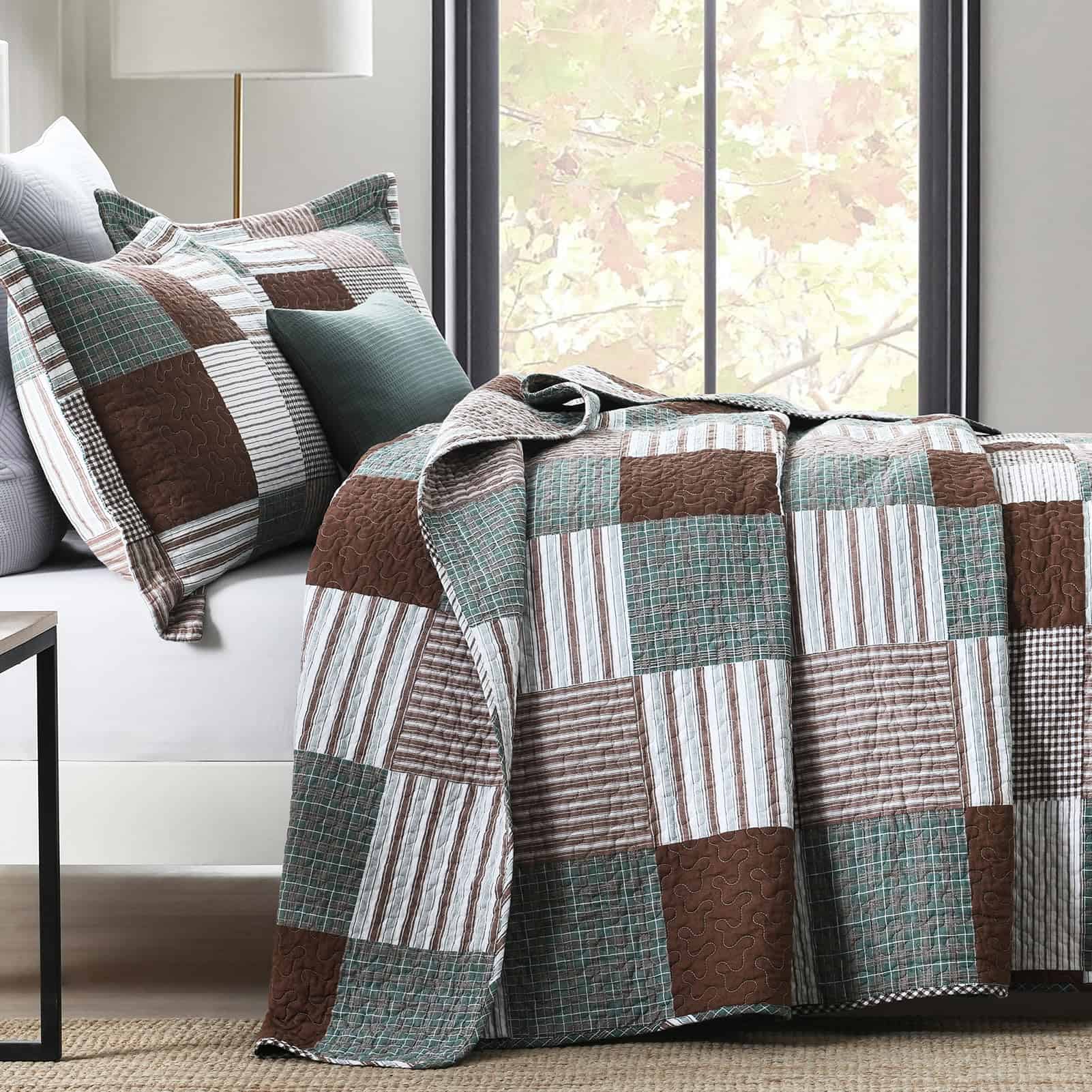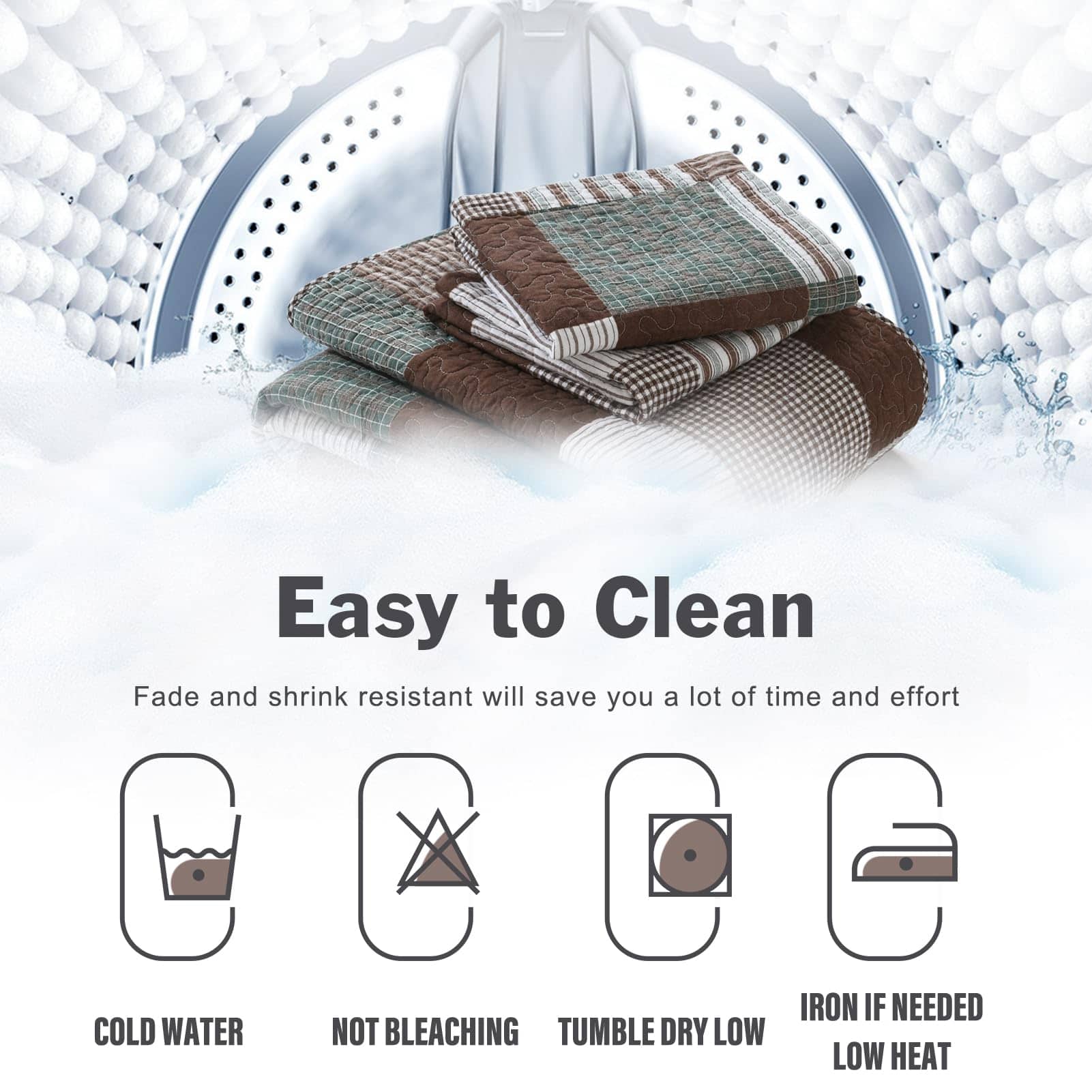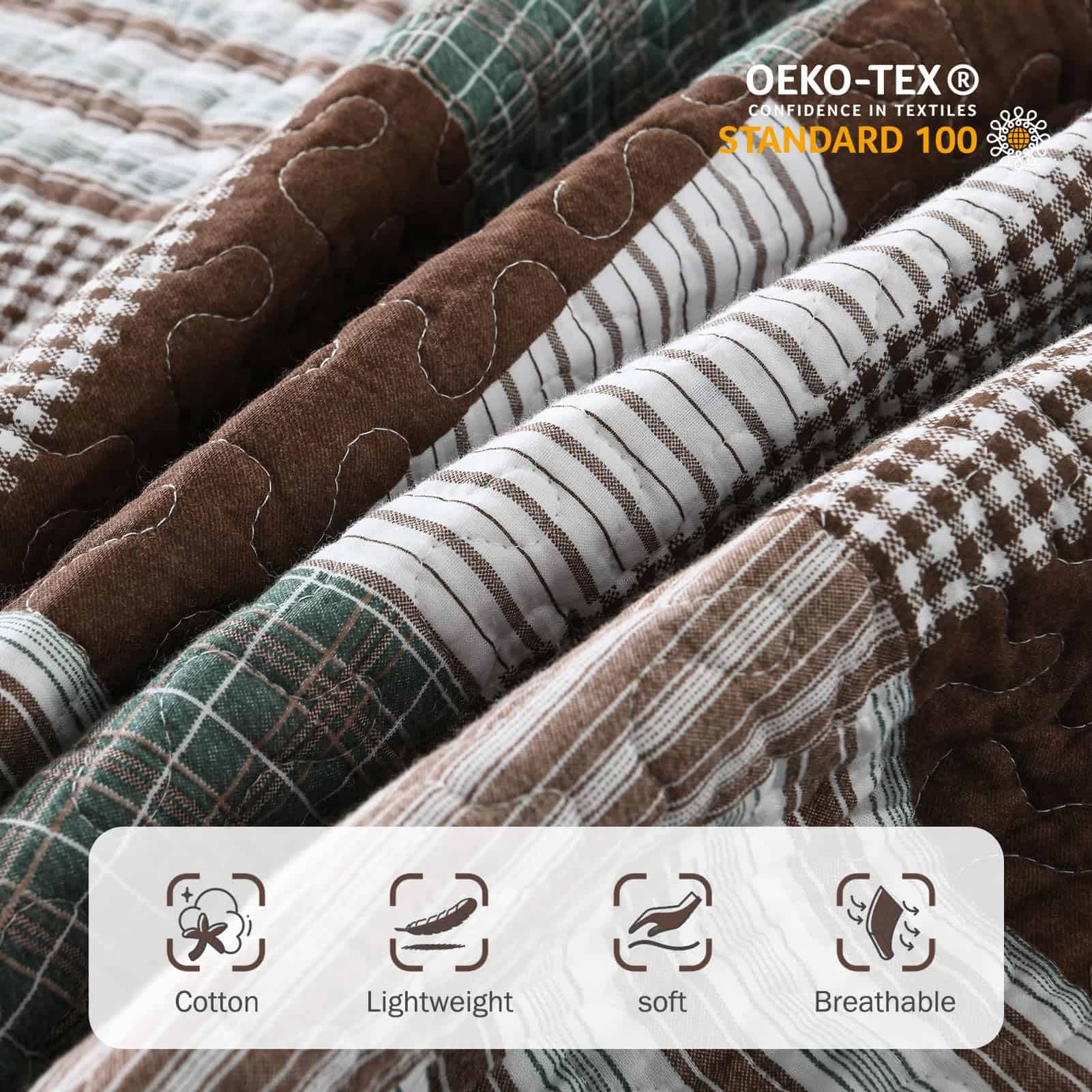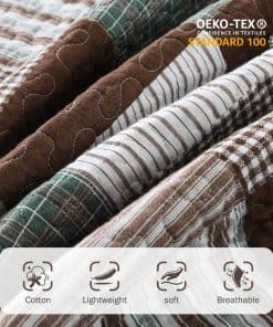 La colcha de cuadros queen size Y-PLWOMEN está hecha de 100% algodón, lo que la hace saludable, transpirable, cómoda y sin olor. Con un patrón de cuadros en tonos marrón y verde, esta colcha queen se ve elegante y puede decorar tu habitación de forma muy bien. La excelente artesanía de doble pespunte garantiza la durabilidad de la colcha y le da un toque de calidad. Este juego de colchas queen size incluye una colcha de 90 * 98 pulgadas y 2 fundas de almohada de 20 * 28 pulgadas. La colcha de algodón de tres capas asegura una excelente retención de calor para que puedas usarla en todas las estaciones. Además, su diseño reversible te permite disfrutar de diferentes experiencias de sueño. Fácil de cuidar, simplemente sigue las instrucciones de lavado a máquina en agua fría y secado a temperatura baja para mantener su aspecto y calidad por mucho tiempo.
