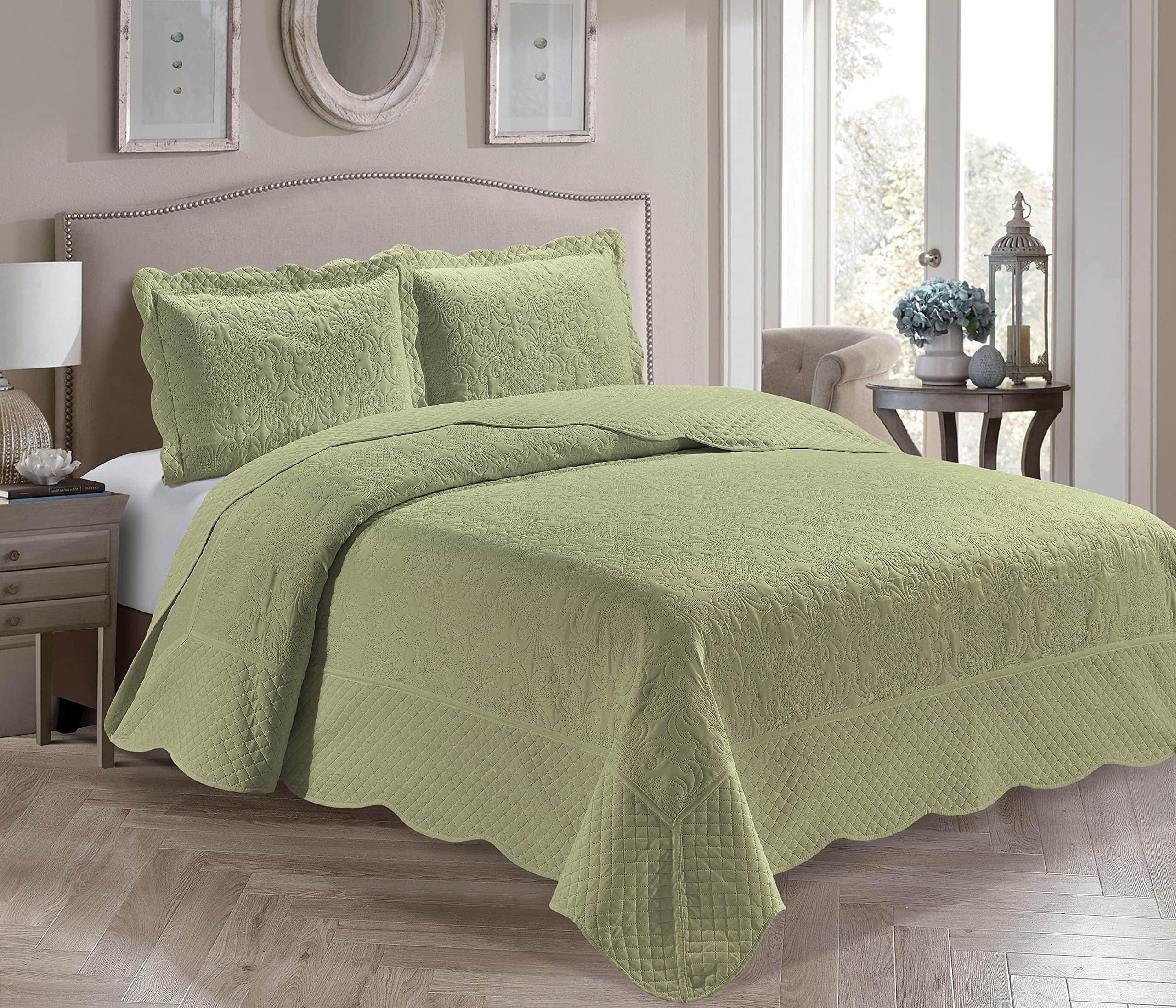 Colcha de Cubrecama de Color Sólido con Relieve de 3 Piezas de la Colección de Hogar Veronica. Este elegante juego de cubrecama de 3 piezas está diseñado para brindar comodidad y estilo a tu habitación. El verde salvia da un toque de serenidad y elegancia a tu espacio. Perfecto para camas tamaño matrimonial o queen, este juego incluye una colcha de tamaño extra con un diseño de relieve para agregar dimensión a tu dormitorio.
