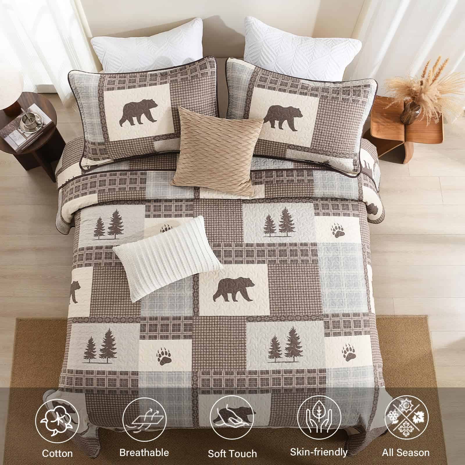 Este juego de colchas de tamaño King de Quilta es la adición perfecta a tu dormitorio. Está fabricado con algodón 100% natural de alta calidad, tanto en las fundas como en los rellenos, garantizando una sensación suave al tacto y una excelente transpirabilidad. La colcha de granja presenta un diseño a cuadros en colores tierra que añadirá un toque de estilo rústico a tu habitación.