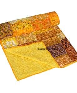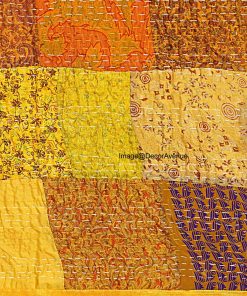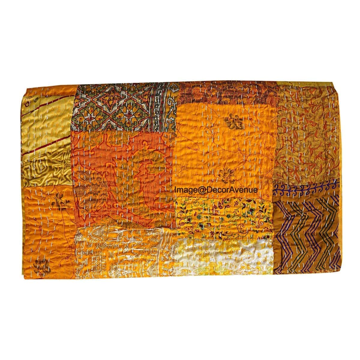 Colcha de Kantha de Patchwork Indio, Hecha a Mano en Seda
