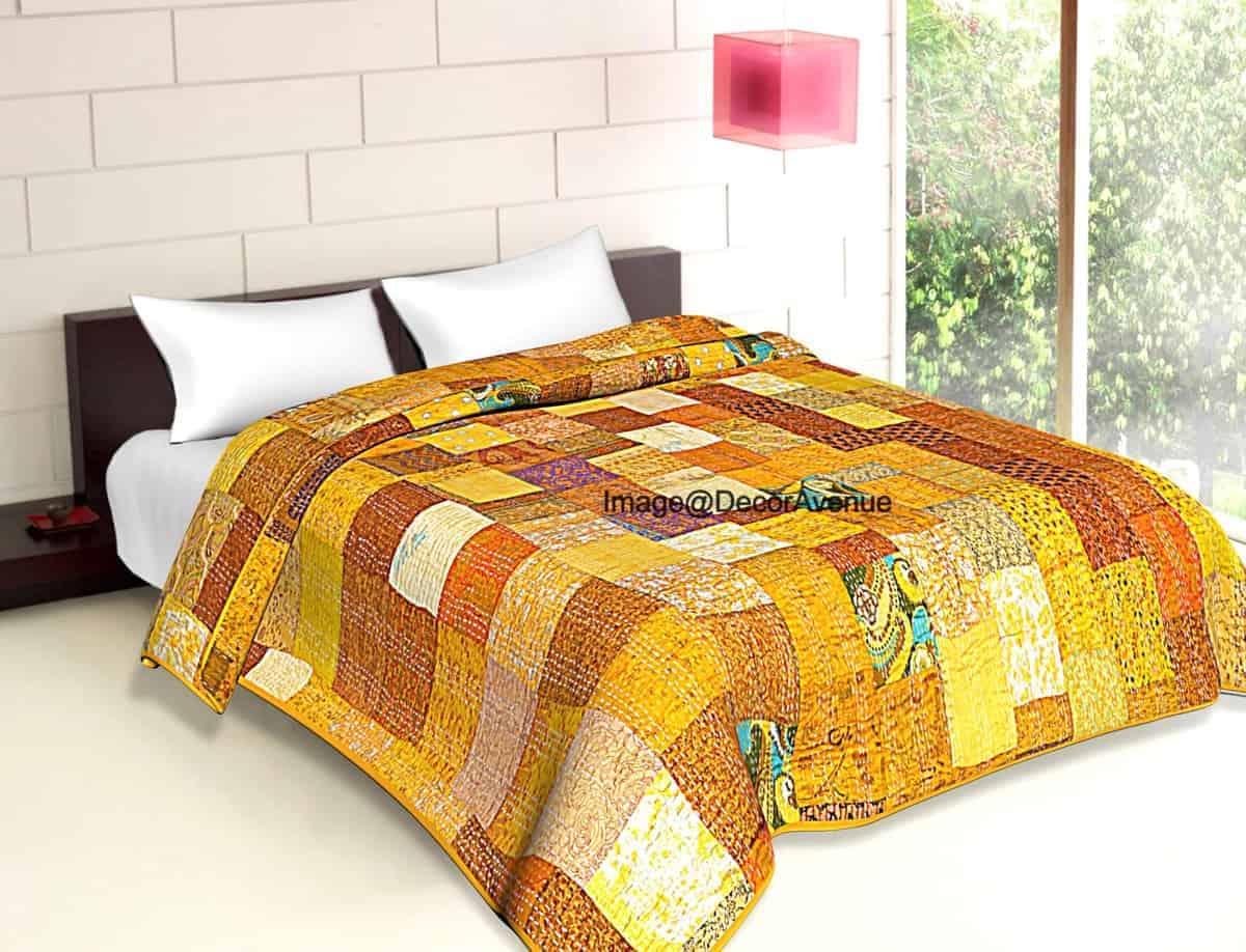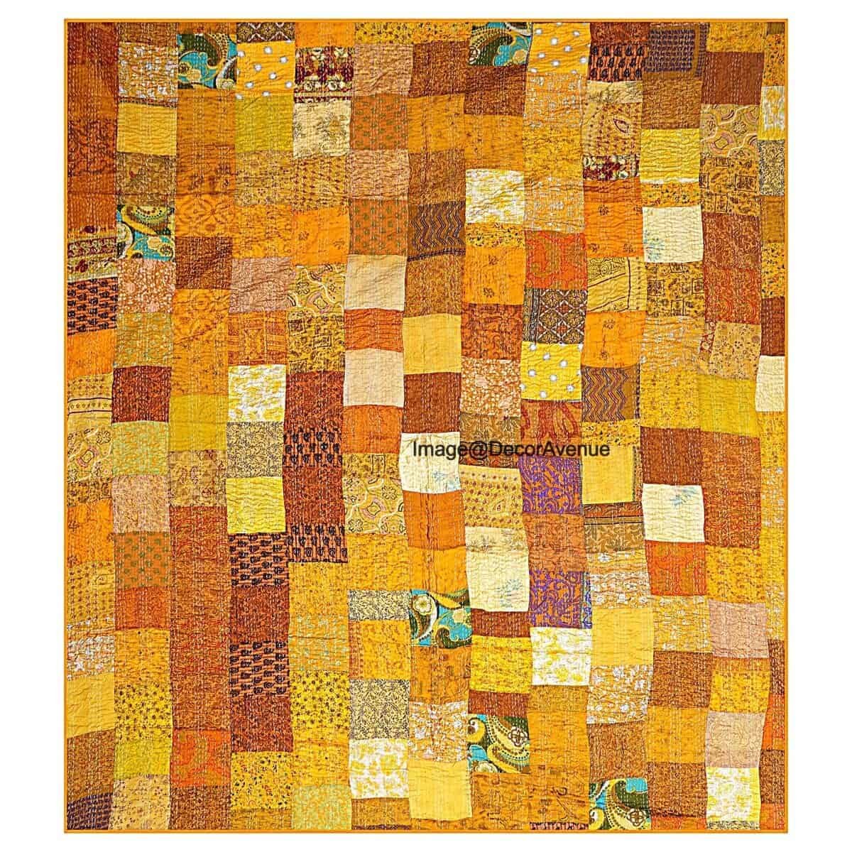 Esta pieza de arte está completamente cosida a mano por mujeres artesanas en Rajasthan, India. Puede dar vida a cualquier habitación con sus colores vivos, hecha utilizando el tradicional y famoso método de bordado a mano Kantha. Esta colcha de cama de Patchwork Kantha está hecha completamente a mano utilizando parches de 100% seda suave Patola. Dale a tu hogar un aspecto tradicional y auténticamente colorido con esta hermosa manta de Kantha o cubrecamas hecha a mano. Tiene dos capas de tela cosidas juntas con miles de pequeños y delicados finos puntos Kantha, hechos a mano suavemente acolchados por artesanos en India. La forma en que los puntos han sido hechos a mano hace que la colcha sea extraordinaria y muy cómoda. Esta colcha es 100% respetuosa con el medio ambiente. Toda la colcha está bordada a mano minuciosamente con un gran número de puntos rectos para crear un producto único, uno de una clase, por lo que también es un regalo perfecto. Tenga en cuenta que estas colchas están hechas utilizando diferentes parches, por lo que cada pieza es un poco diferente a la otra, la imagen del listado le da una idea de cómo se ve, pero los colores de los parches pueden ser diferentes.