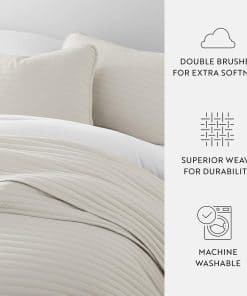 ¡Dale a tu habitación una nueva adición acogedora con este juego de colcha acolchada ultra suave con fundas! Lo hemos llenado generosamente con un relleno artificial y cada pieza está cepillada dos veces para darle esa sensación súper suave y acogedora. Los hermosos y sutiles pespuntes acolchados añaden dimensión y un toque magnífico a cualquier dormitorio. Hilado a partir de nuestros hilos premium, este juego es dos veces más fuerte que el algodón, resistente a las arrugas y una opción perfecta para aquellos con alergias o piel sensible. Disponible en 3 diseños elegantes con rayas, flores y diamantes, elevando la apariencia y sensación de cualquier dormitorio. Los juegos están disponibles en 6 hermosos colores, ¡será difícil elegir solo uno para refrescar tu cama!