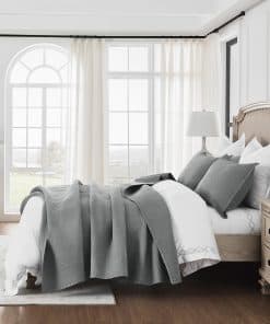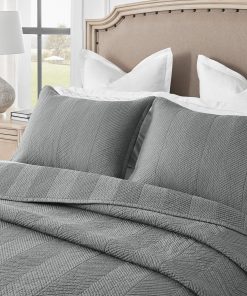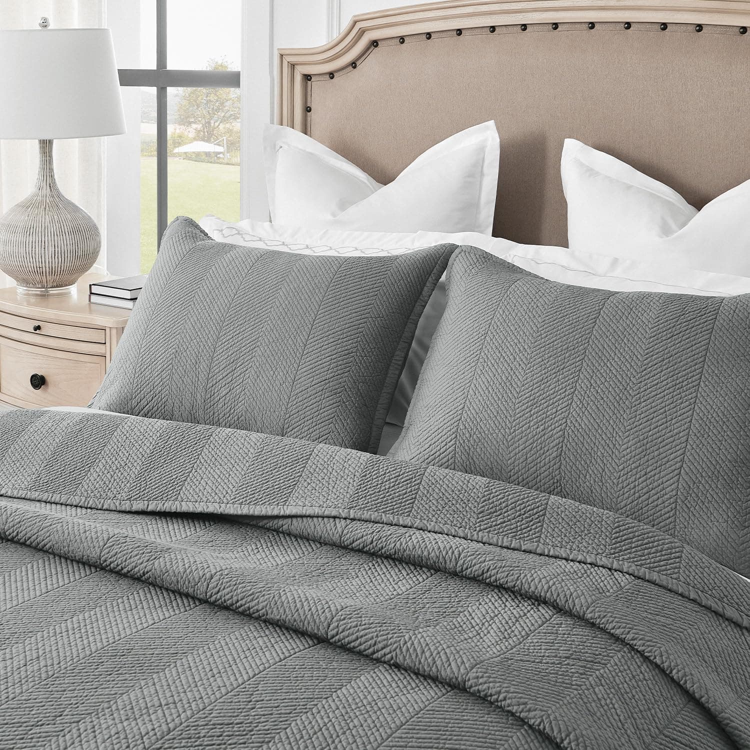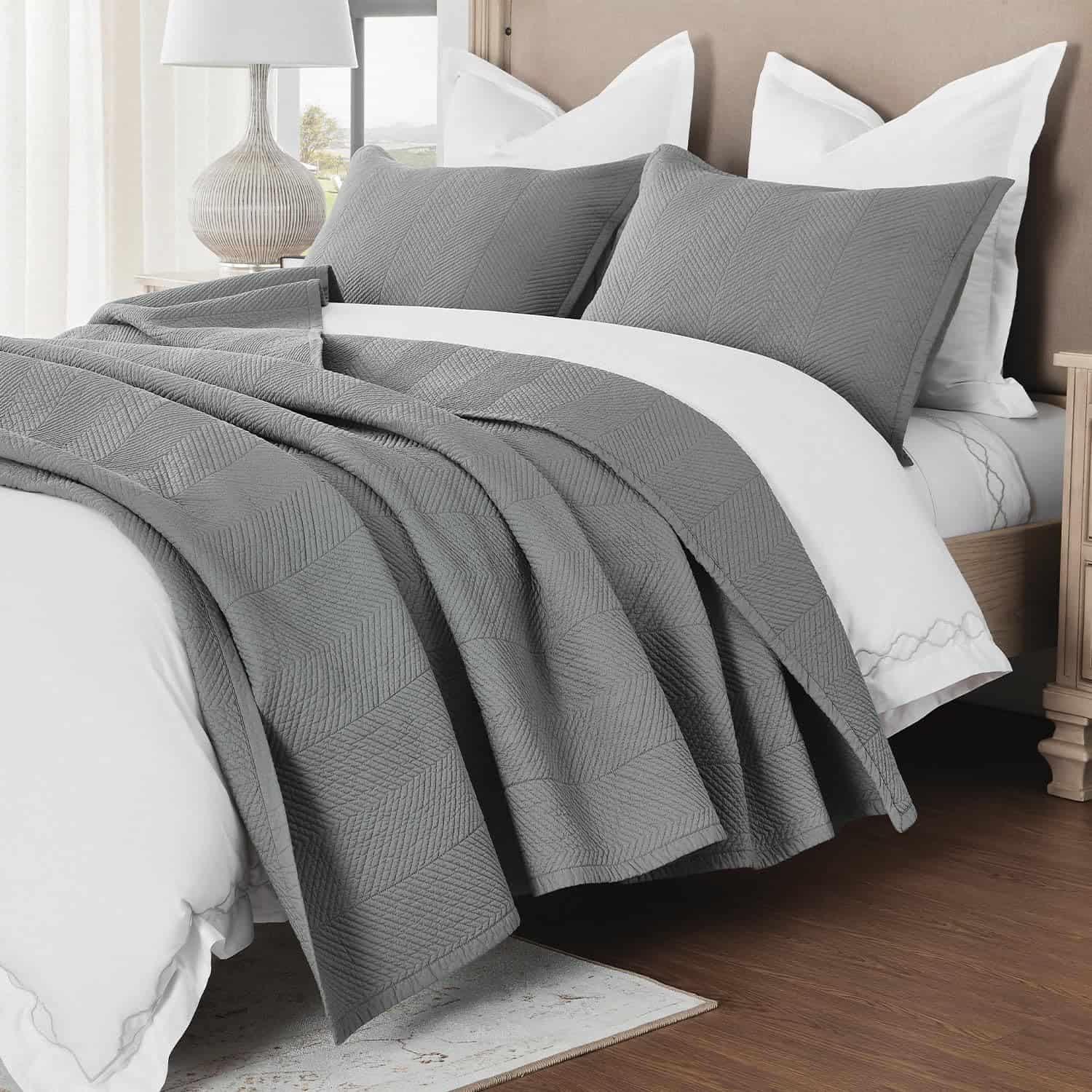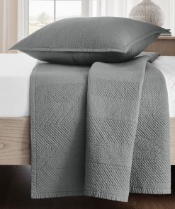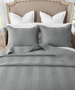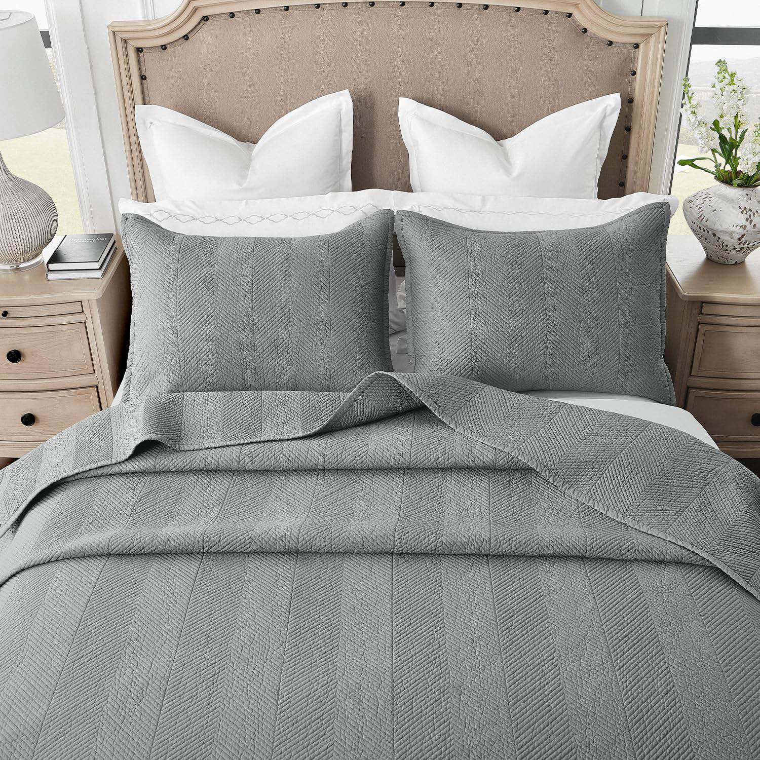 Colcha de lujo de puro algodón Calla Angel Evelyn Stitch Chevron en gris, diseño Chevron. Este juego de 3 piezas incluye una colcha de tamaño queen de 92″ x 88″ y dos fundas de almohada estándar de 20″ x 26″. El material es sumamente suave, versátil y elegante, con un diseño clásico de geometría que le brinda un aspecto de lujo y moderno a tu habitación. La colcha es pre-lavada y pre-encogida, con ribete y reversible para mayor practicidad. Se puede lavar a máquina para una fácil limpieza. Con una construcción de tela completa y relleno de acolchado de algodón puro convencional de 250 gramos, esta colcha es perfecta para añadir un toque de elegancia a tu dormitorio.