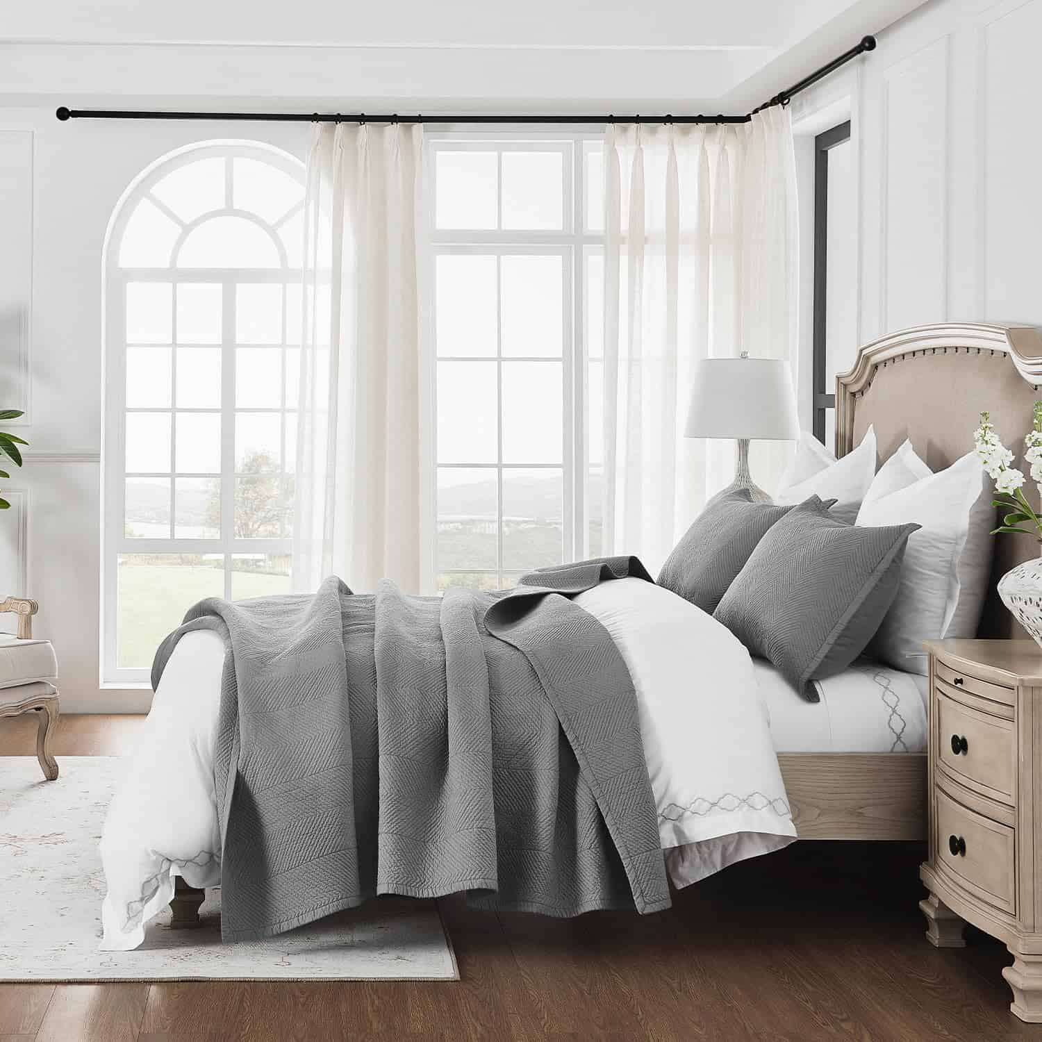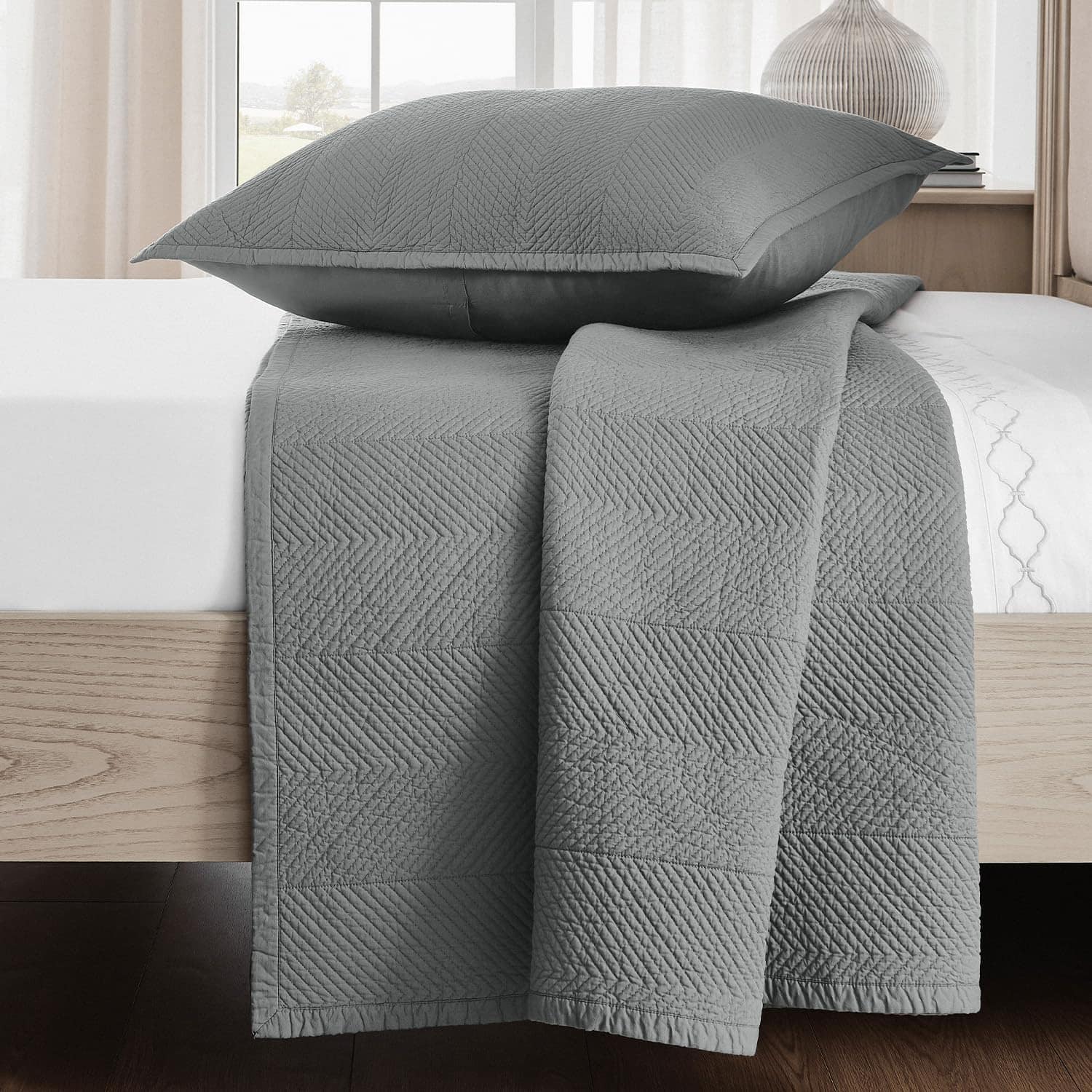 Colcha de lujo de puro algodón Calla Angel -Gris Chevron
