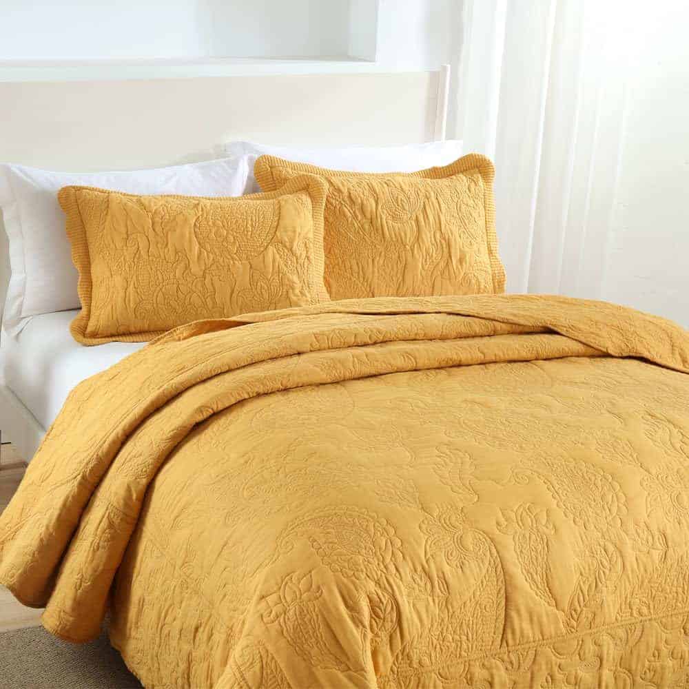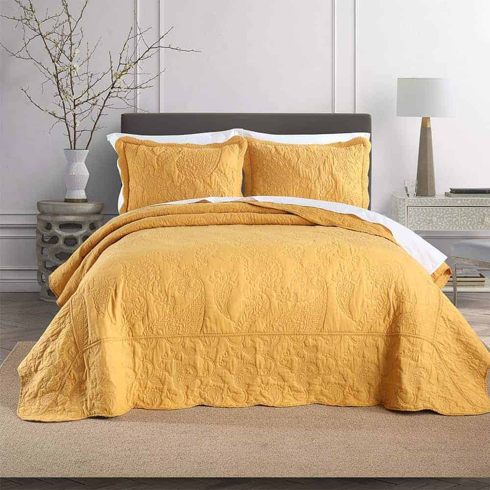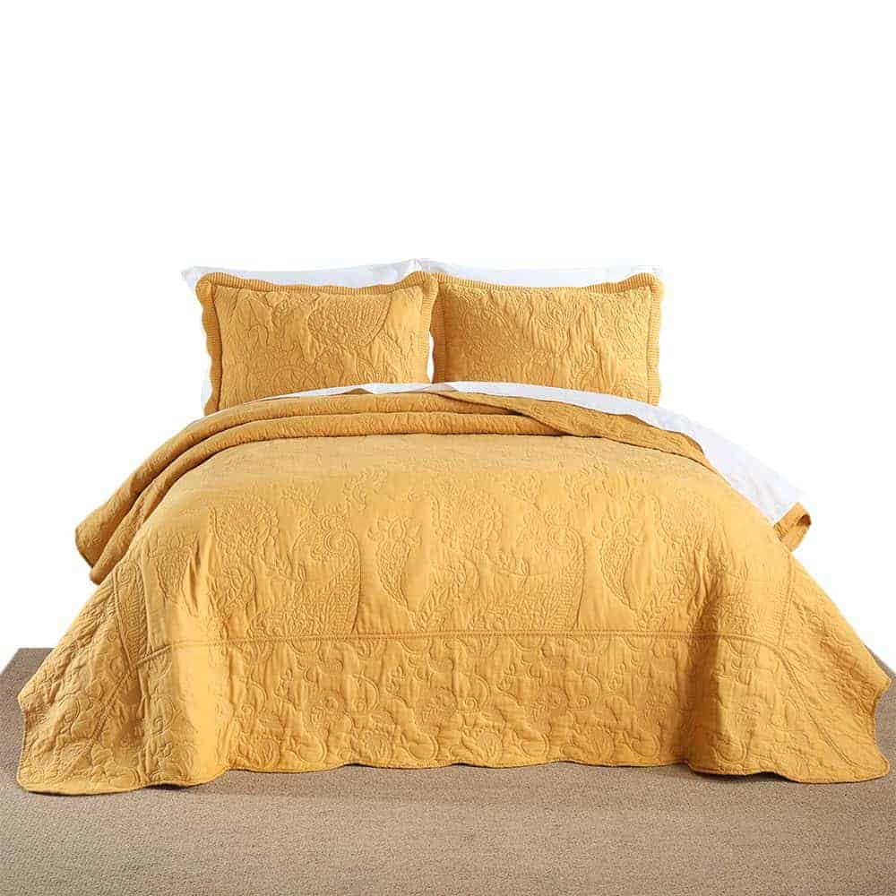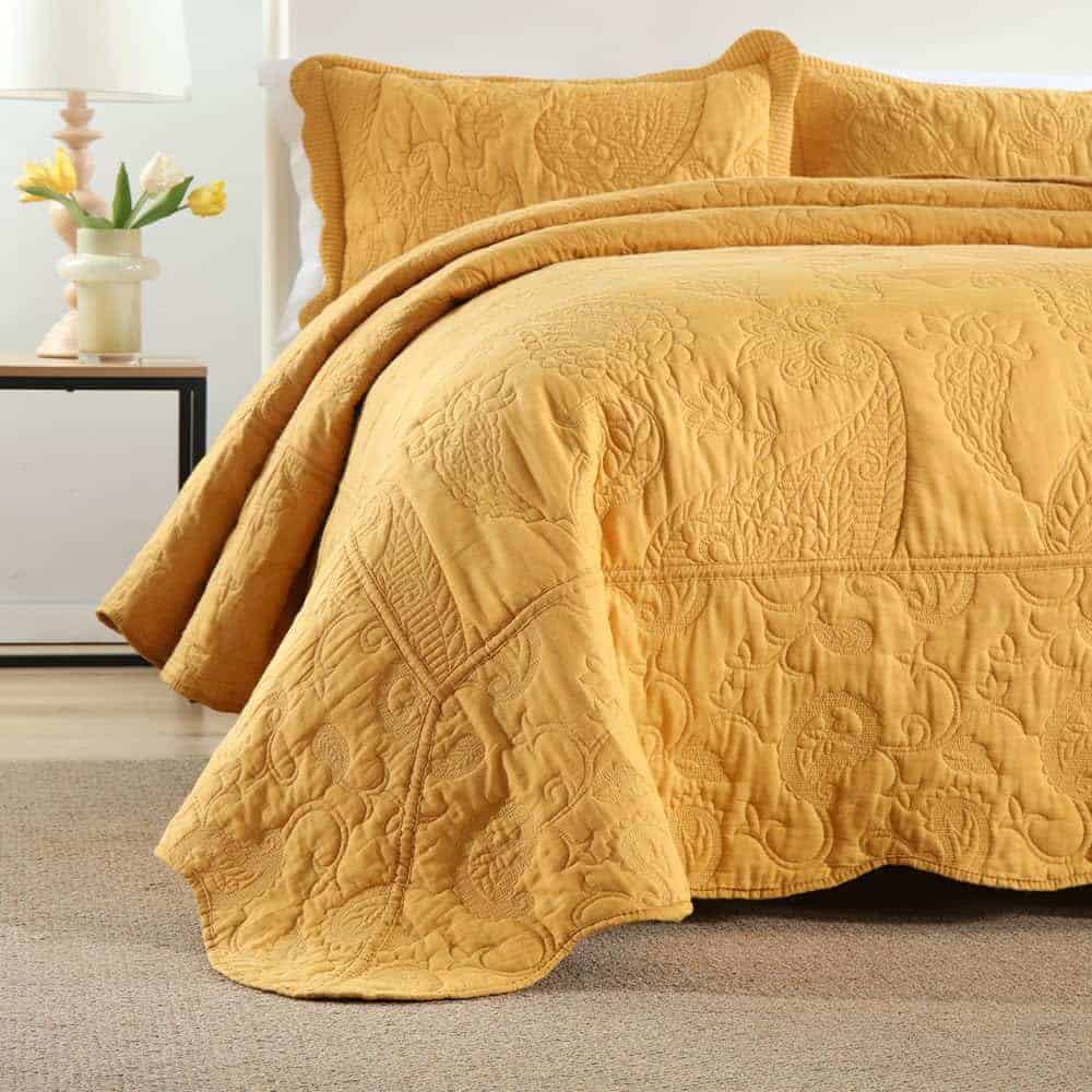 5. El paquete incluye: Obtendrás 1 colcha tamaño king (98×108 pulgadas) y 2 fundas de almohada a juego (20×36 pulgadas). Puedes elegir un tamaño más grande si deseas una colcha que caiga al suelo.
