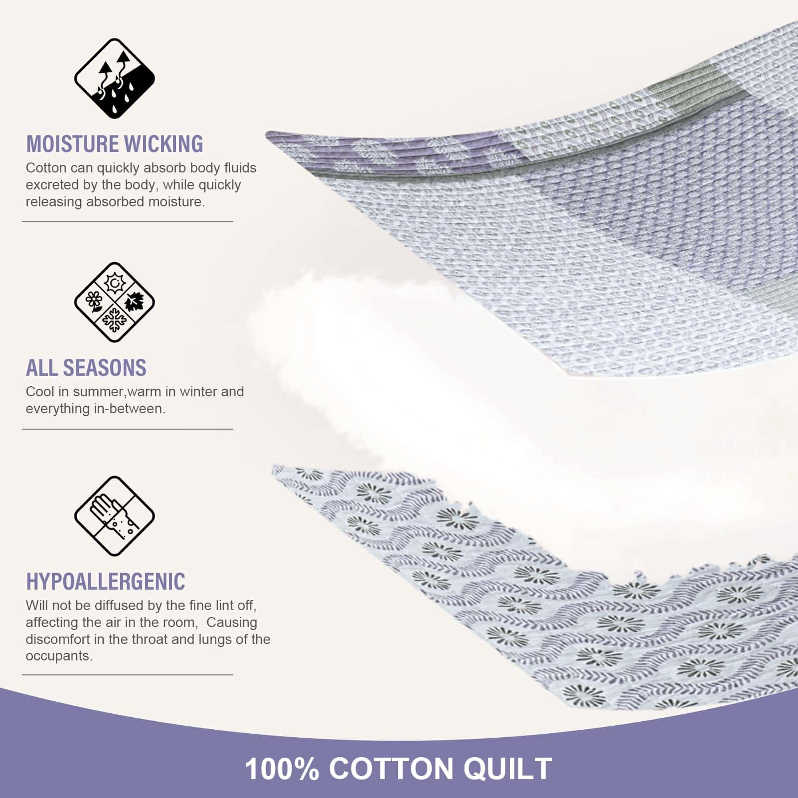 1. Colcha 100% algodón: La colcha queen está hecha de 100% algodón, más saludable, suave, amigable con la piel, proporcionando comodidad transpirable, ayudándote a disfrutar de un día familiar especial y tranquilo.
