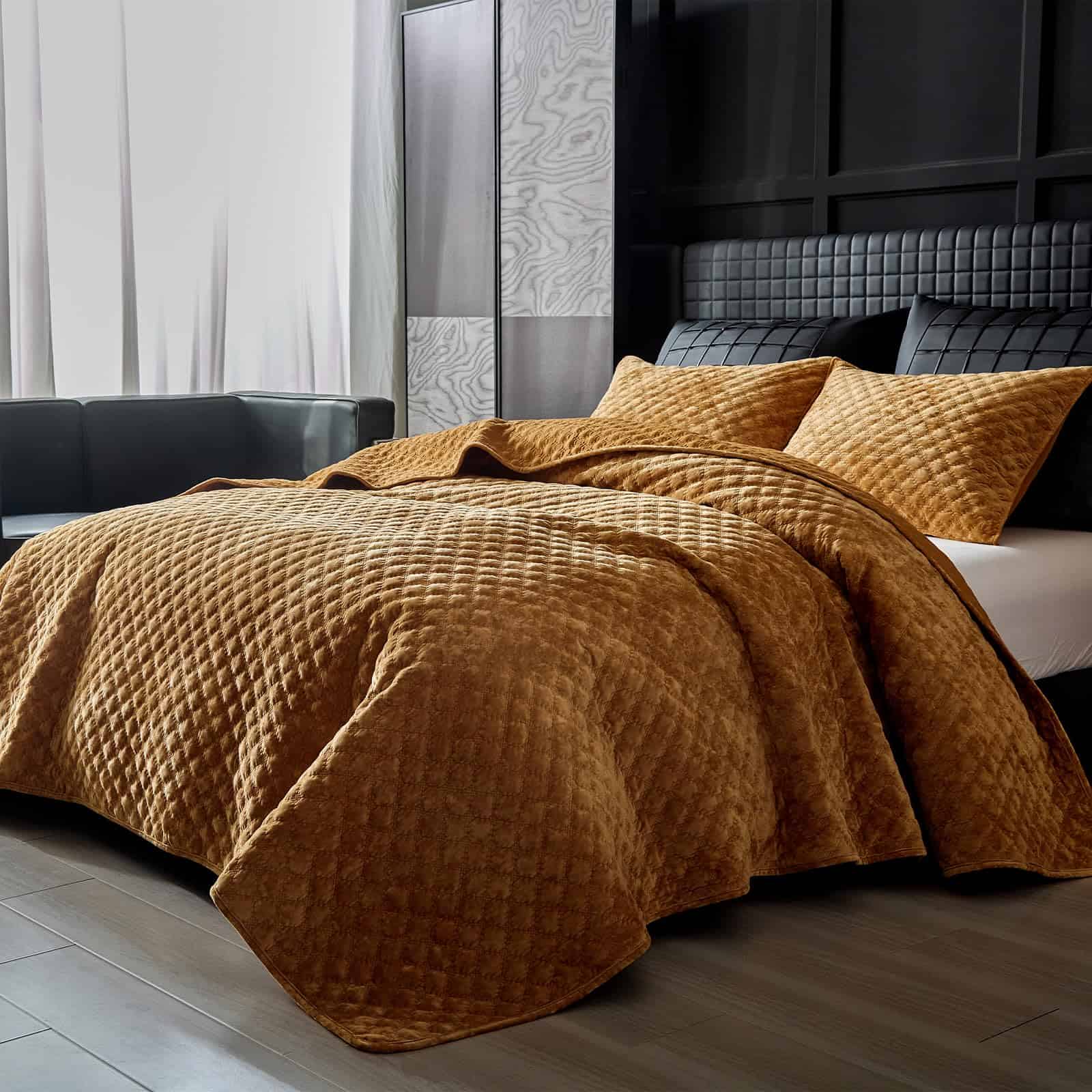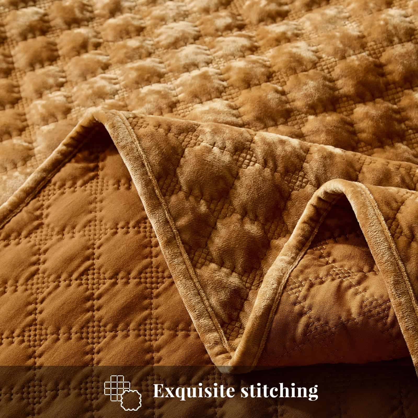 Colcha de Terciopelo WARMDERN tamaño Queen, -Naranja Quemado