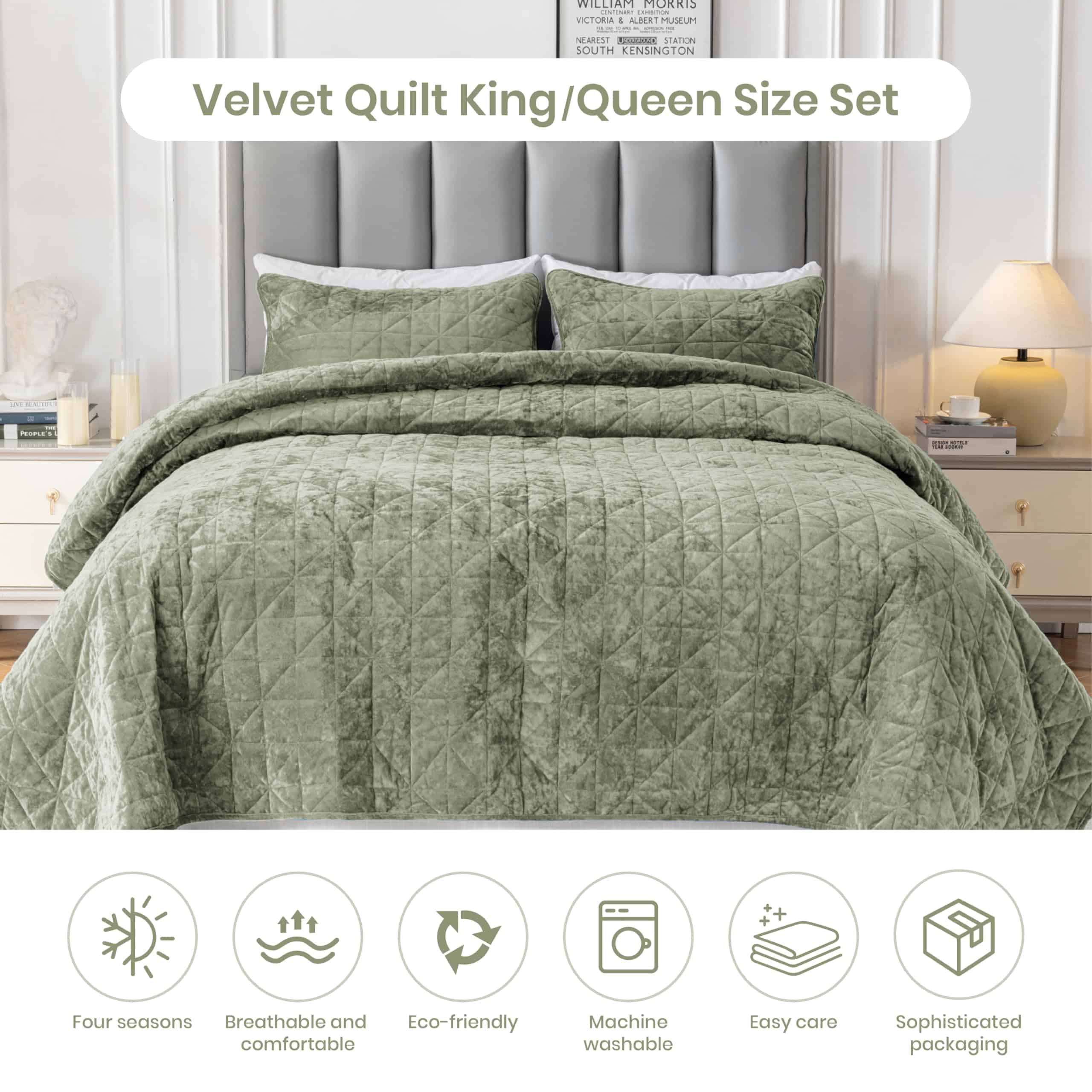 3. Adecuado para todas las estaciones: La colcha de cama de terciopelo está inspirada en técnicas tradicionales de costura a mano, al tiempo que incorpora patrones modernos de diamantes, agregando un sentido de moda y arte. Esta colcha de cama de terciopelo no solo es adecuada para usar en primavera y otoño, sino que también se puede utilizar como colcha ligera y transpirable en verano, como una sábana o cubierta de edredón cálida en invierno, y su buen rendimiento de aislamiento térmico la hace adecuada para usar en diversas condiciones de temperatura.