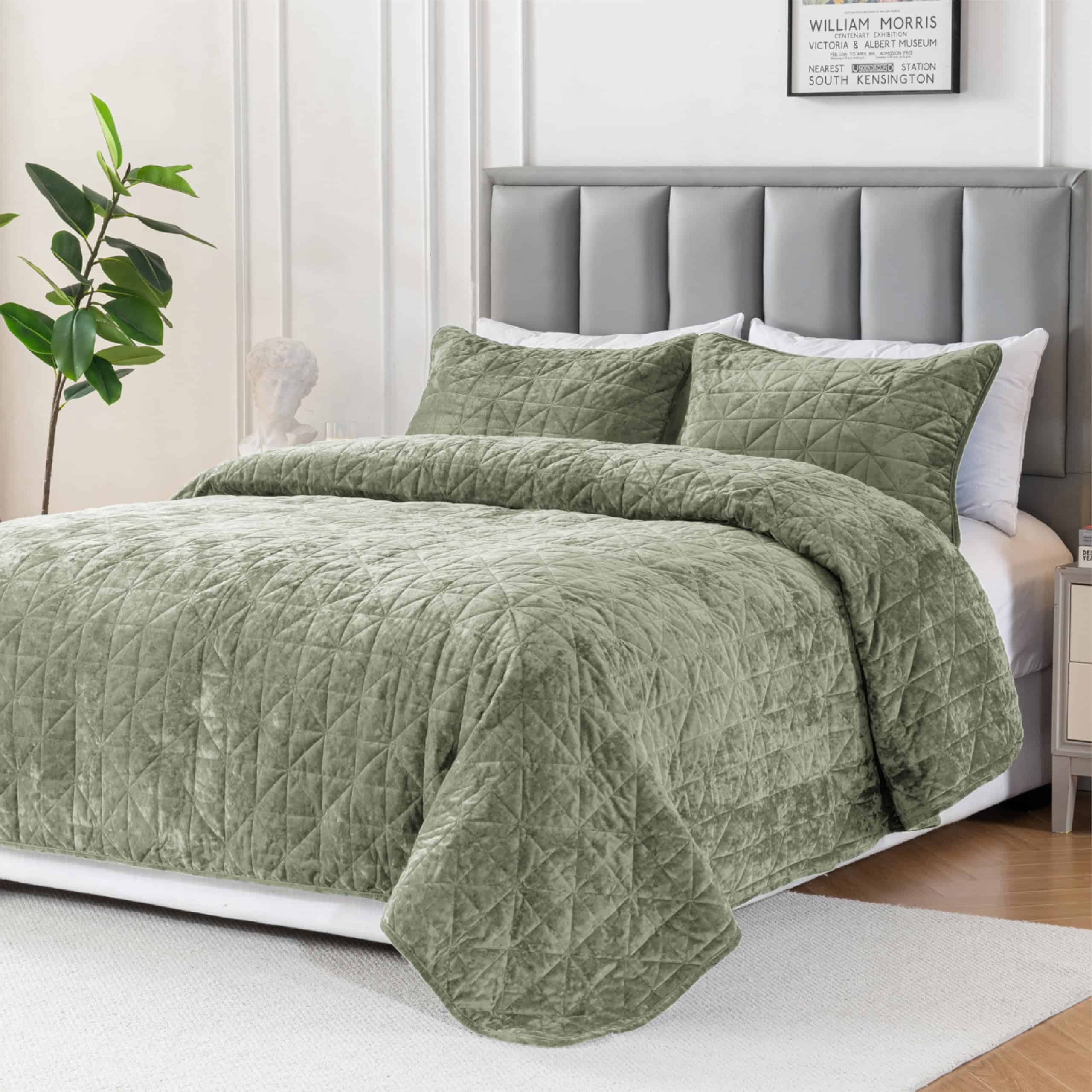 1. Material de lujo y ultra suave: La colcha de terciopelo está hecha de un nuevo terciopelo, la luz y la sombra en la superficie de la tela exhibirán diferentes efectos con el cambio del ángulo de visión, dándole un sentido de sofisticación. Proporciona a los usuarios un tacto tipo nube y una experiencia visual impresionante que mejora en gran medida la experiencia de dormir.