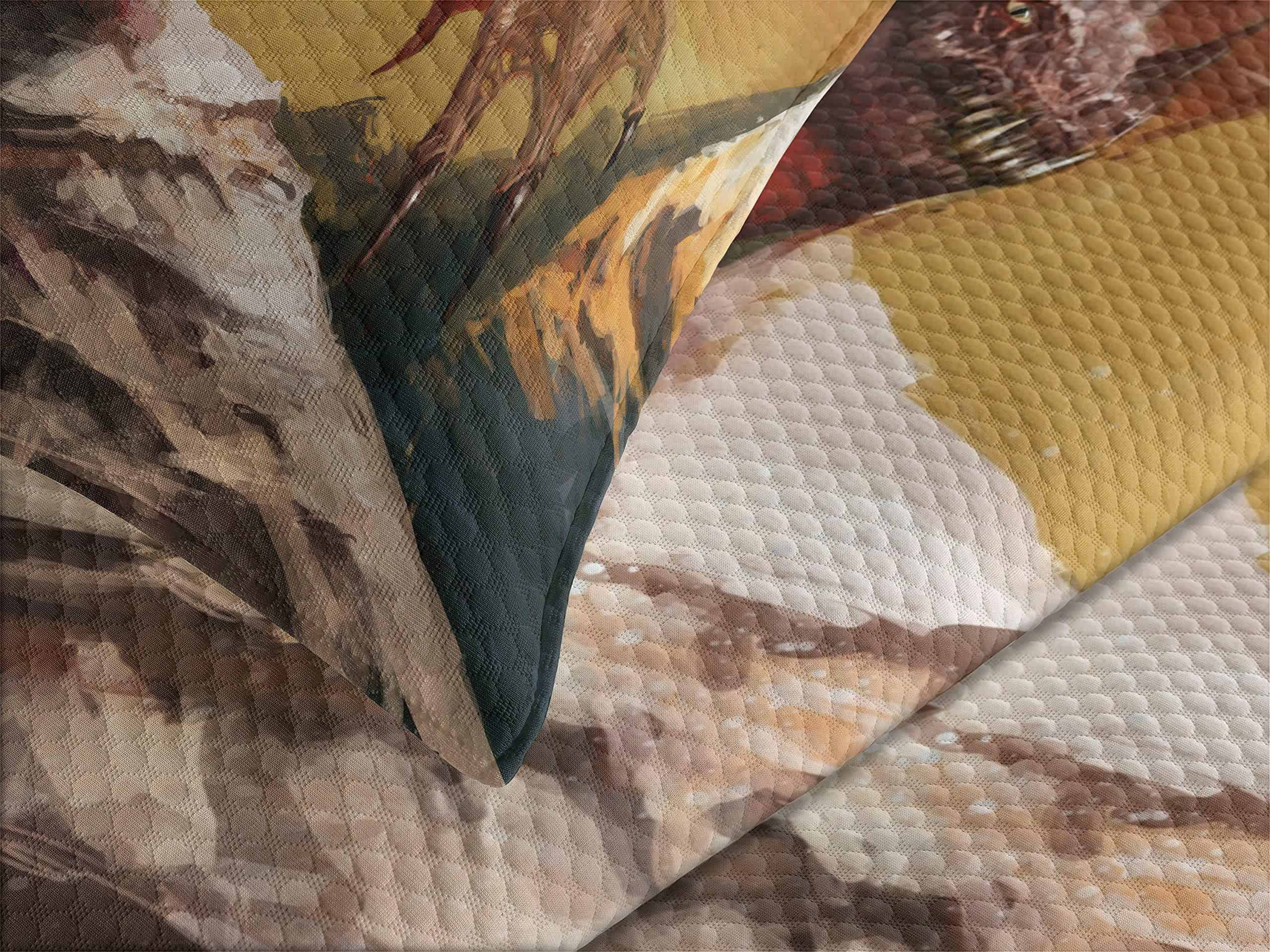 1. 1 Colcha King 104″ X 88″ + 2 Fundas de Almohada 36″ X 20″. Sobre de tamaño grande – Gran cobertura a lo largo de los lados de la cama. 2. Hecho de – Poliéster suave de doble cepillado de alta densidad para una suavidad óptima y máxima comodidad. 3. Peso pesado – No se caerá fácilmente de la cama. Puede utilizarse como manta. Colcha tejida de alta tecnología. 4. Lavable a máquina – Ciclo frío, Secadora segura. Fácil de planchar. NO SE DESVANECE. Excelente costura y mano de obra. 5. Impreso con tecnología digital de última generación. La colcha y las fundas de almohada se imprimen solo en el lado delantero.