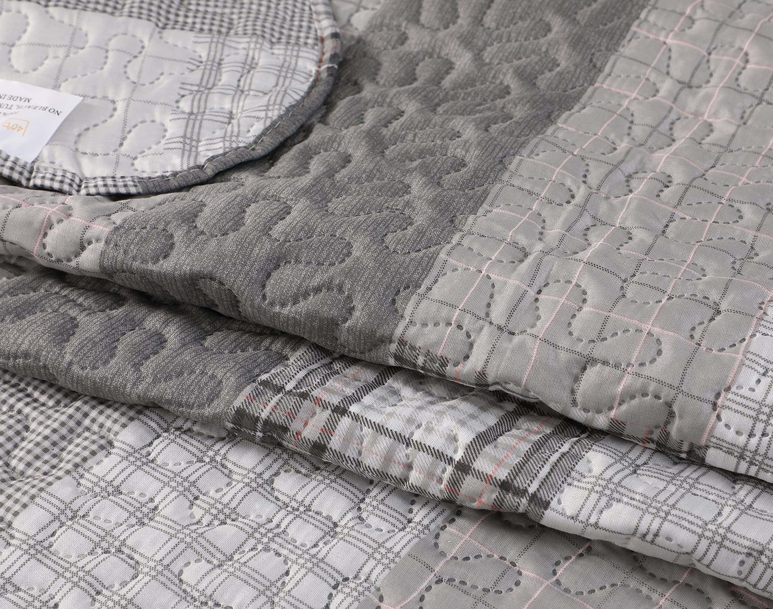 1. Diseño Moderno Impreso: Este Juego de Colchas Decorativas Únicas con Estampado en Relieve es Perfecto para la Decoración del Hogar. Este Moderno Patrón a Rayas Geométricas Múltiples Consiste en Tartán, Gingham, Sólidos con Colores Blancos Grises Taupe Plateados. Lino Fino, Transpirable, Elegante y Reversible de Lujo Ligero Juego de Ropa de Cama. Elección Perfecta para Propietarios de Hogares con Gustos Sofisticados en Decoración. 2. Dimensiones: Este Tamaño Reina Completo Incluye 1 Colcha – 92 x 94 Pulgadas y 2 Fundas de Almohada – 20 x 30 + 2 Pulgadas. Si Desea que la Colcha Cubra las Sábanas o la Cama, Elija un Tamaño de Juego de Colchas Más Grande. Adecuado para Noches Calurosas de Verano, También se Puede Usar como Sábana o Manta en Invierno, Las Colchas Ligeras son Muy Fáciles de Mover el Cuerpo Libremente al Dormir. 3. Material del Contenido – 100% Microfibra Cepillada, Relleno 100% Poliéster. Esta Colcha está Diseñada para Uso en Todas las Estaciones, Puede Mantenerlo Caliente y Cómodo, pero no Demasiado Caluroso. 4. Característica – Duradera, Sin Pilling, Súper Suave, No se Arruga, Pre-lavada, Pre-encogida, Resistente a la Decoloración, Toque de Algodón 100%. Hermosamente Empaquetado en una Bolsa con Cremallera. 5. Instrucciones de Cuidado Fácil – Lavable a Máquina con Agua Fría en Ciclo Suave. Lavar Blancos y Colores por Separado. No Usar Lejía en Colores. Secar en Secadora a Baja Temperatura.