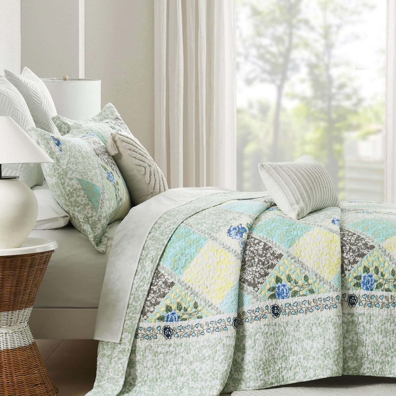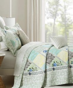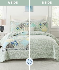 4. Decoración reversible de colcha – Colcha para cama queen de estilo campero con colores blanco, azul y verde, colcha reversible de tamaño grande, cambia el aspecto de tu dormitorio al instante y lo suficientemente fresco para las temperaturas más cálidas.