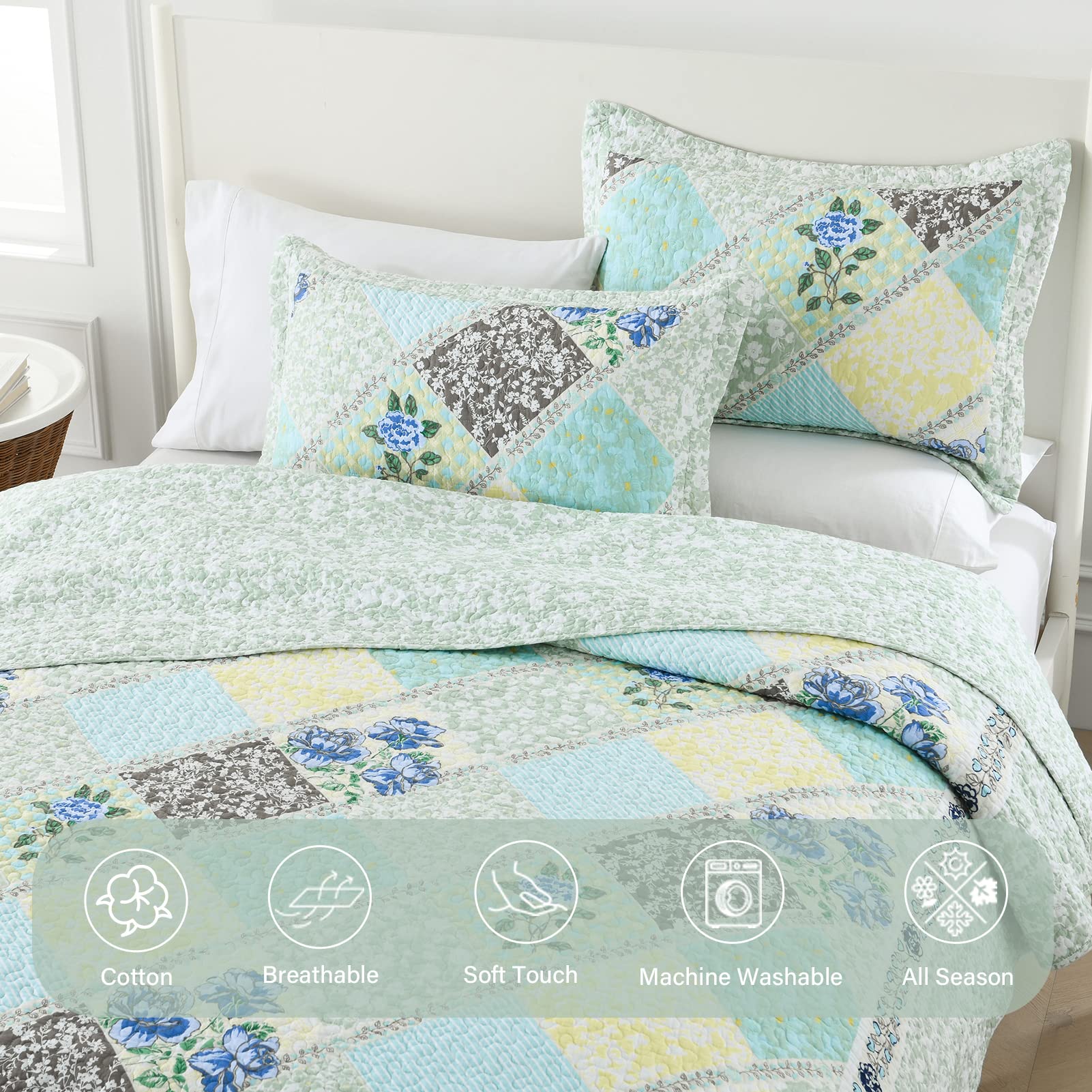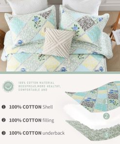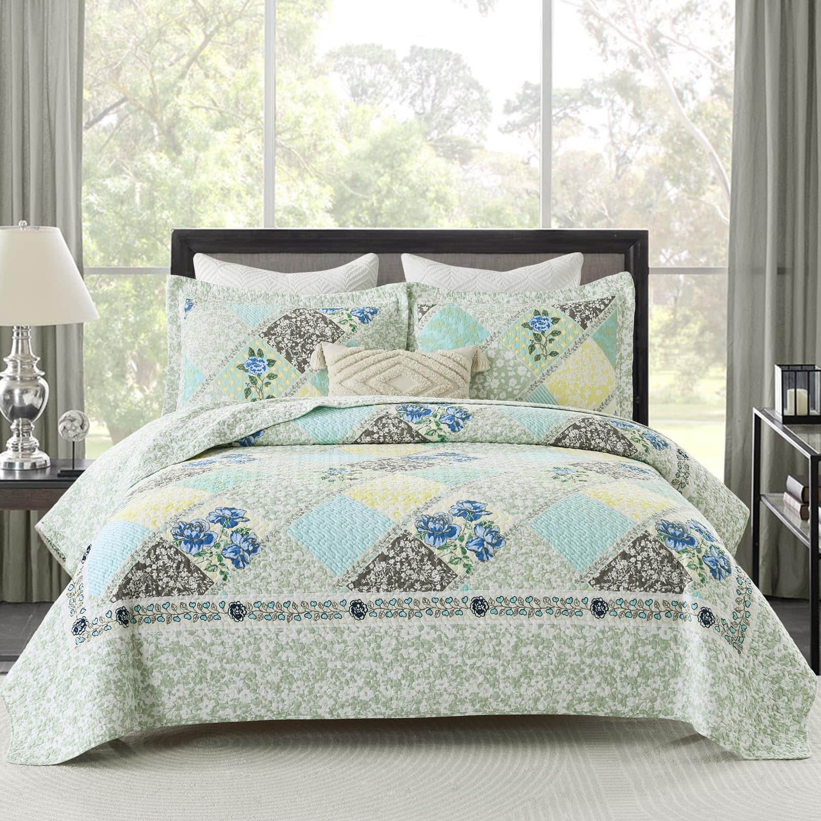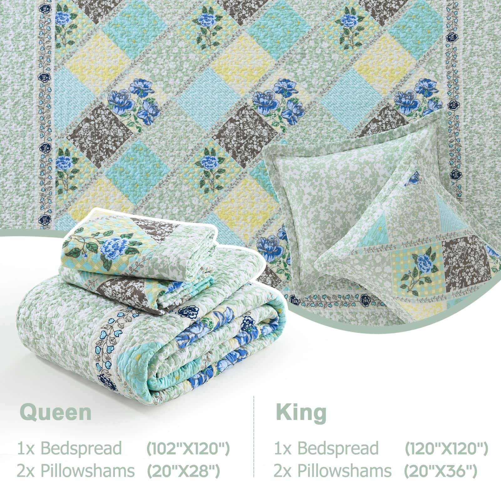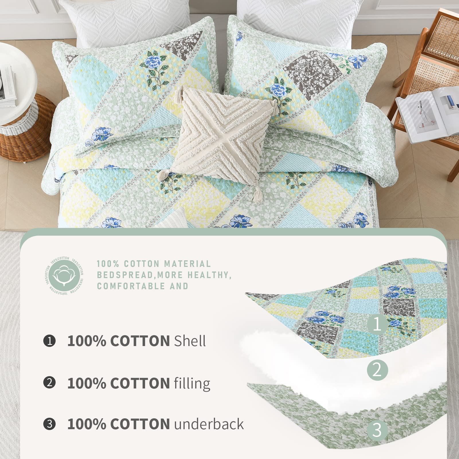 1. Colcha de algodón – Colcha extragrande para cama queen, colcha acolchada floral hecha de 100% algodón, más saludable y transpirable. Suavidad, amigable con la piel y duradera.