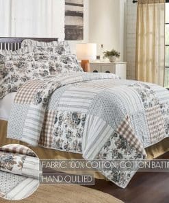 2. COLCHA DE RETALES: Los bloques cuadrados de estilo patchwork se mantienen unidos con técnicas de acolchado de alta calidad Stitch in the Ditch y Echo, para costuras fuertes y de calidad heredada.