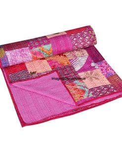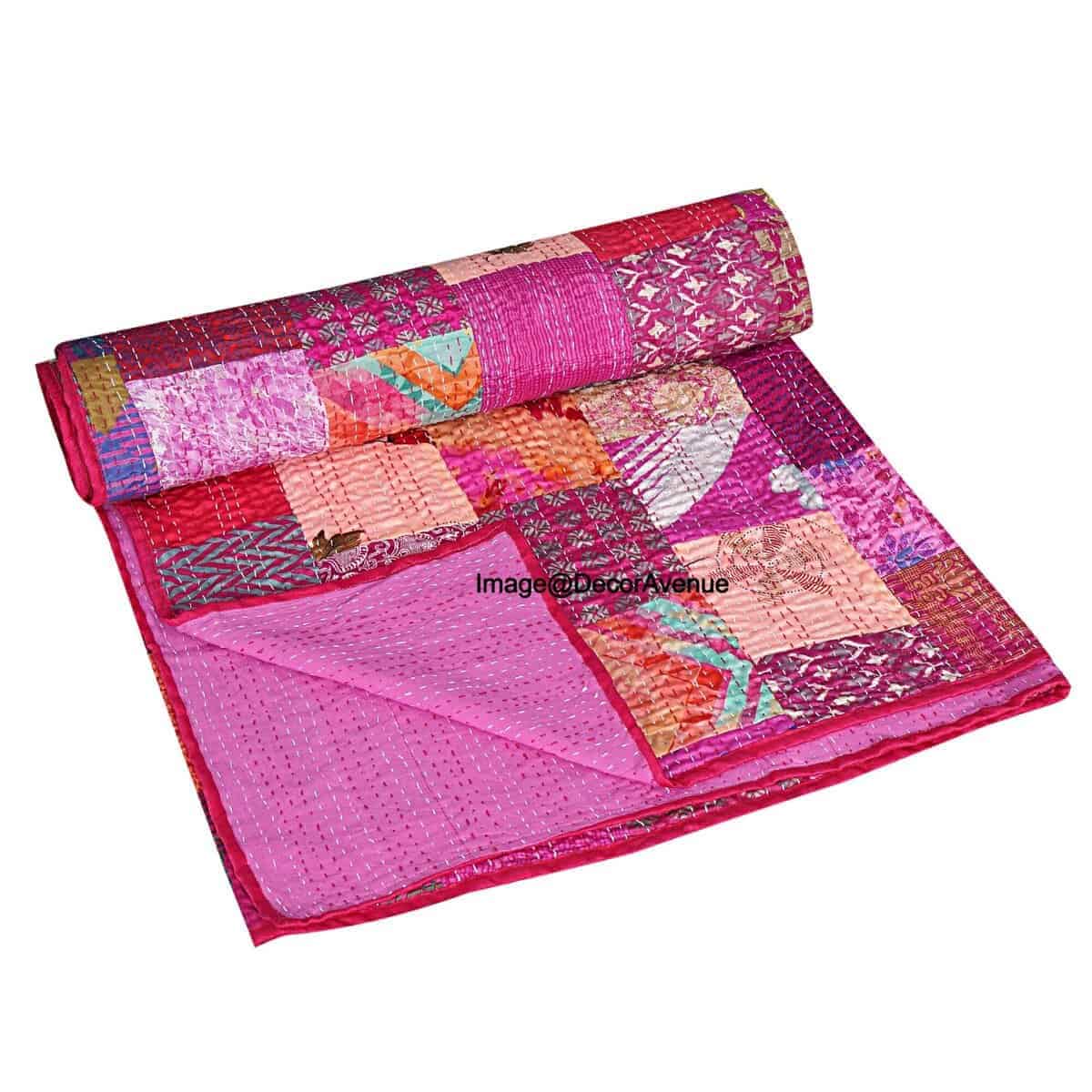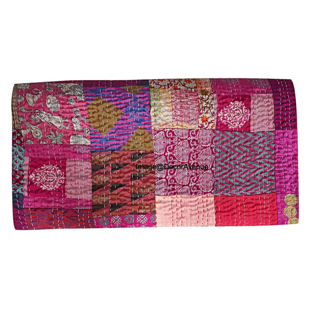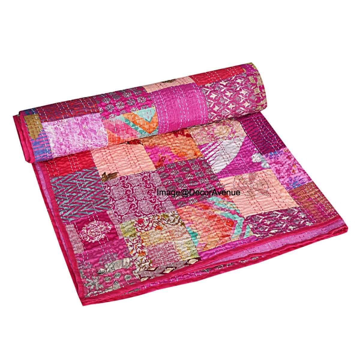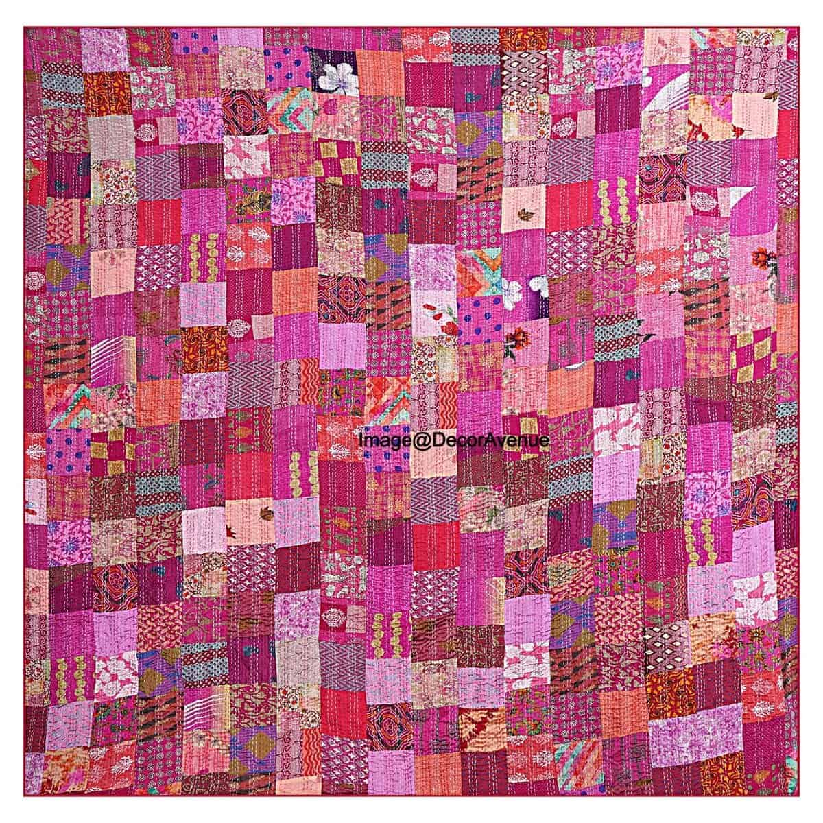 Esta pieza de arte está completamente cosida a mano por mujeres artesanas en Rajasthan, India. Puede dar vida a cualquier habitación con sus colores vivos, fabricada utilizando el método tradicional y famoso de bordado a mano Kantha. Este cubrecama Kantha Patchwork está completamente hecho a mano utilizando retazos de 100% pura suave seda patola. Dale a tu hogar un aspecto tradicional y auténtico lleno de color con esta hermosa colcha Kantha que también se puede utilizar como colcha de cama hecha a mano. Tiene dos capas de tela cosidas juntas con miles de pequeñas y delicadas puntadas Kantha, artesanalmente acolchadas a mano por artesanos en India. La forma en que las puntadas se han hecho a mano hace que la colcha sea extraordinaria y muy cómoda. Esta colcha es 100% ecológica. Toda la colcha está bordada a mano meticulosamente con un gran número de puntadas rectas para crear un producto único, único en su clase, por lo que también es un regalo perfecto. Por favor, ten en cuenta que estas colchas se hacen utilizando diferentes retazos, por lo que cada pieza es un poco diferente de la otra. La imagen de la lista te da una idea de cómo se ve, pero los colores de los retazos pueden ser diferentes.