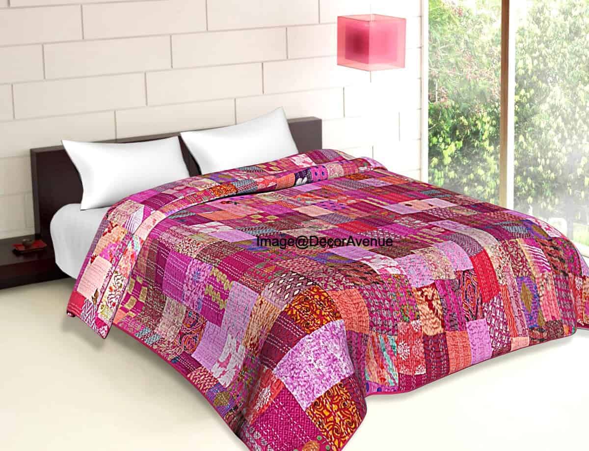 Colcha Kantha de Retazos DecorAvenue, Colcha de Cama de