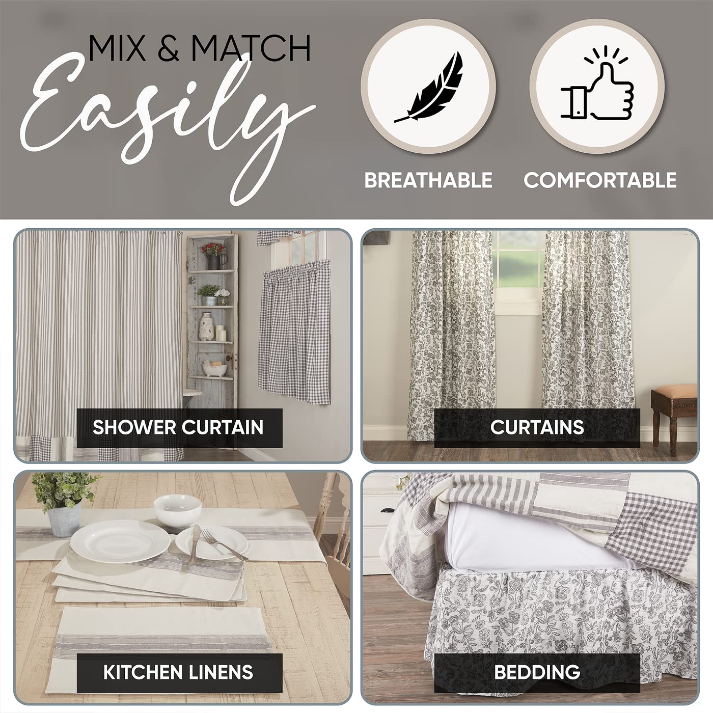 5. MEZCLA Y COMBINA FÁCILMENTE con ropa de cama rústica, cortinas de baño, cojines para sillas y más. Los tejidos naturales ofrecen transpirabilidad y comodidad, mientras que los estampados coordinados te permiten crear un aspecto tan individual como tú.