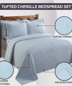 Transforma tu dormitorio en un refugio sereno y elegante con la Colcha King Size de la Colección Jullian de Better Trends. Confeccionada en chenille de algodón 100%, esta colcha ofrece una sensación increíblemente suave y transpirable que garantiza comodidad durante todo el año. Ligera pero cálida, proporciona el equilibrio perfecto ofreciendo una acogedora sensación durante los meses más fríos sin sentirse pesada, al mismo tiempo que te mantiene fresco y cómodo durante las estaciones más cálidas. Con un moderno diseño de rayas azules, esta colcha agrega un toque sofisticado a la decoración de tu dormitorio. Su estética contemporánea complementa una variedad de estilos de interior, convirtiéndola en una alternativa versátil a los edredones más voluminosos. Con medidas de 120″ x 110″, ofrece una cobertura generosa para camas King Size, cayendo elegantemente sobre los lados para un aspecto pulido y ordenado. Diseñada tanto para la belleza como para la practicidad, esta colcha es lavable a máquina para un fácil mantenimiento, asegurando que se mantenga fresca, suave y duradera por años. Ya sea utilizado como un elemento esencial diario o como una elegante adición para ocasiones especiales, la Colcha King Size de la Colección Jullian de Better Trends combina funcionalidad y elegancia atemporal para realzar cualquier dormitorio.