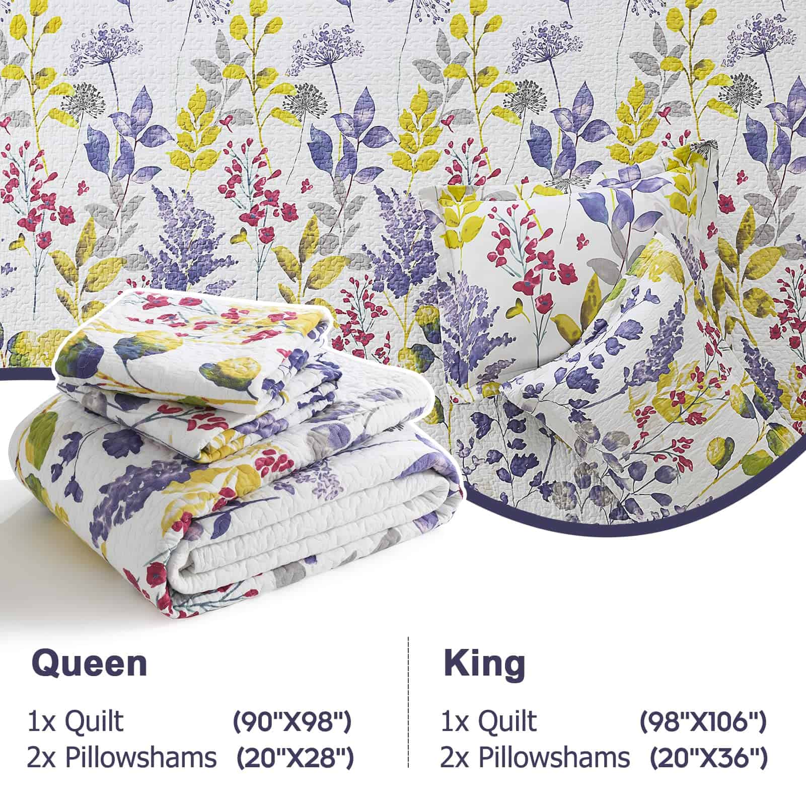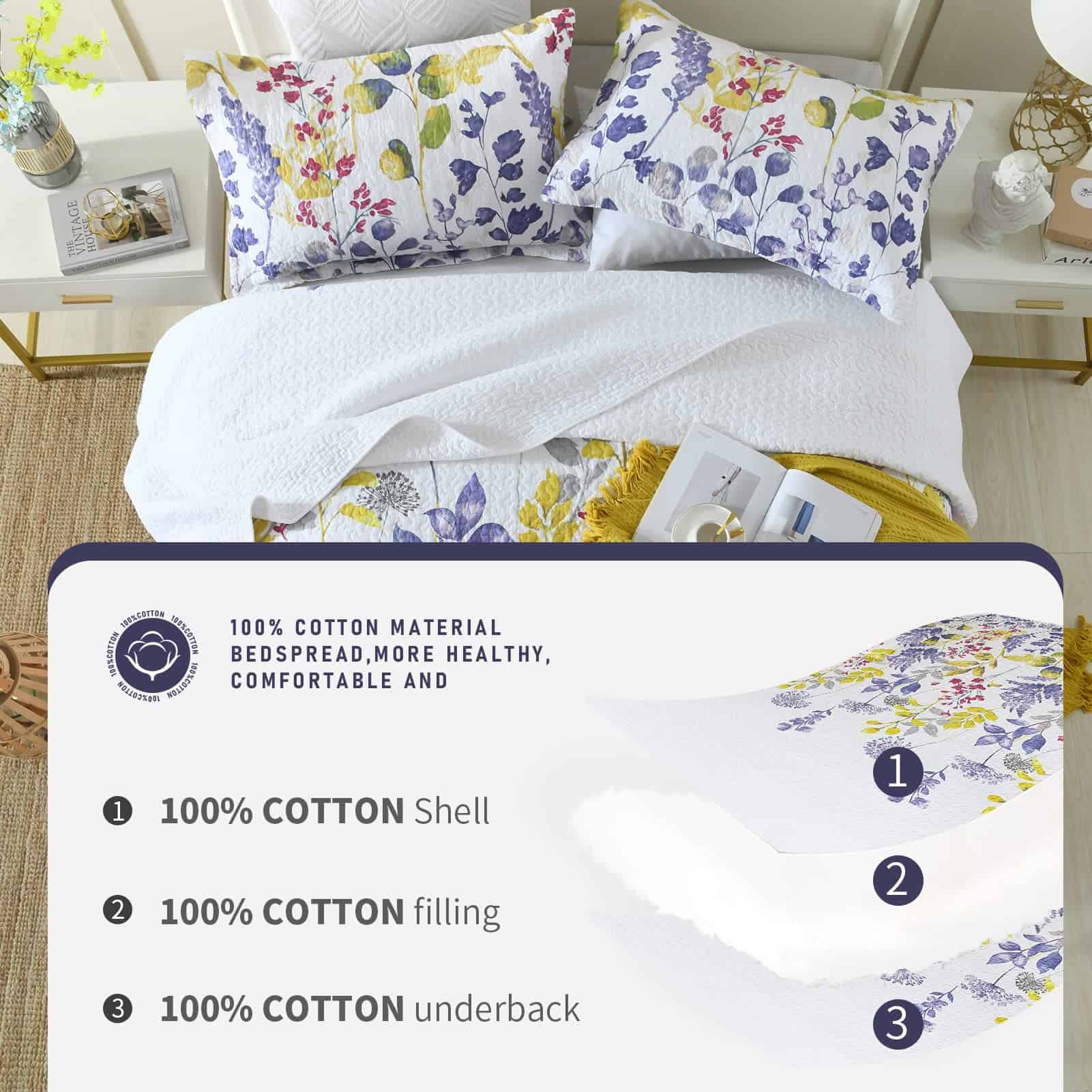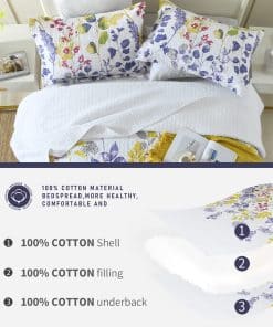 1. Colcha de Algodón – Colcha king size de hojas florales hecha de 100% algodón, más saludable y transpirable. Suavidad, amigable con la piel y duradero.