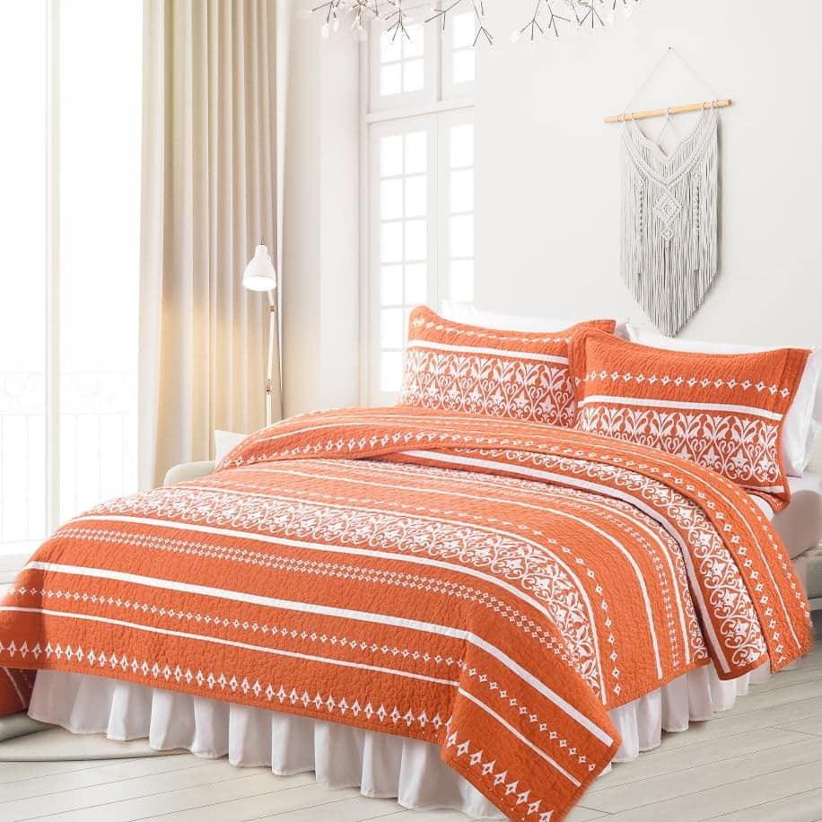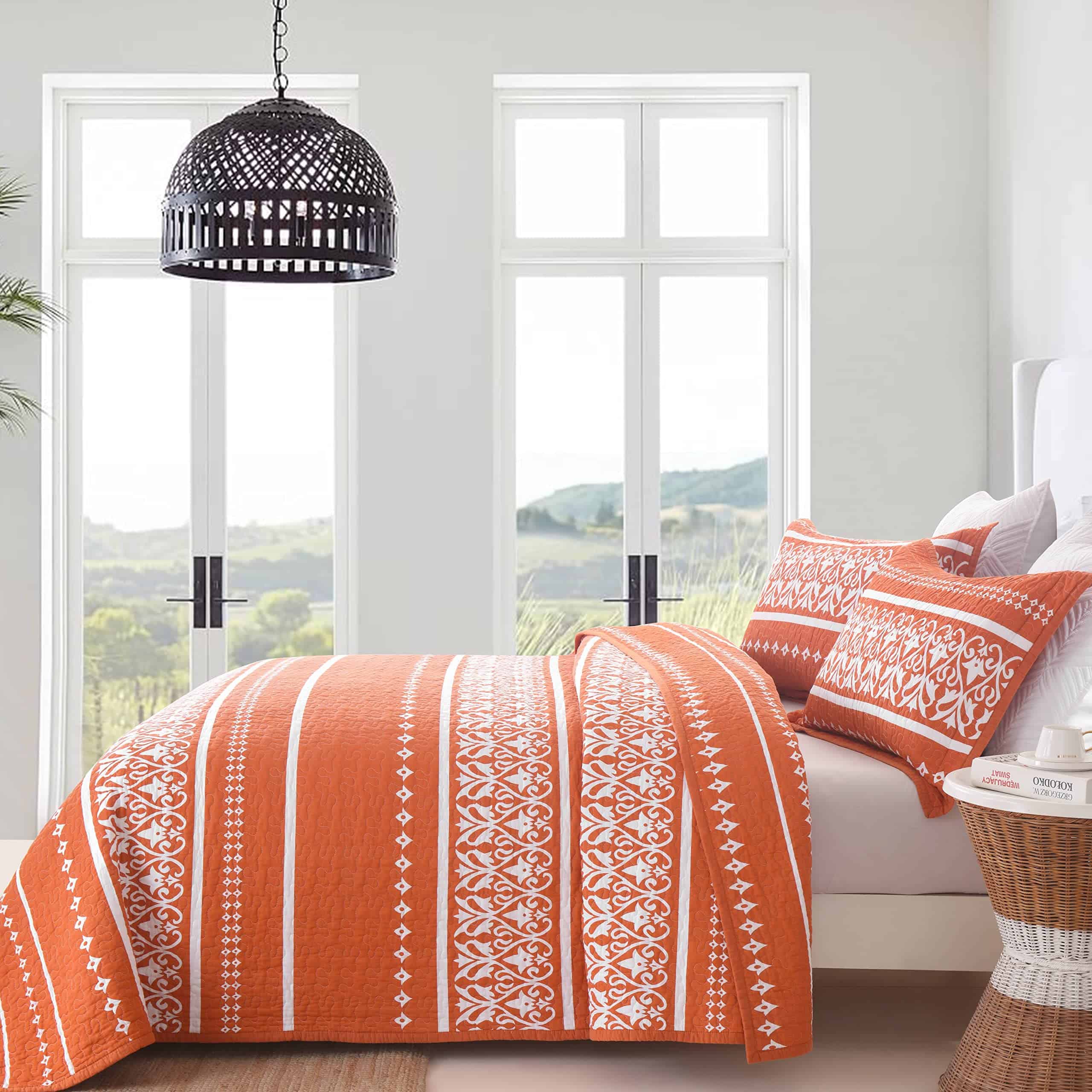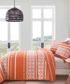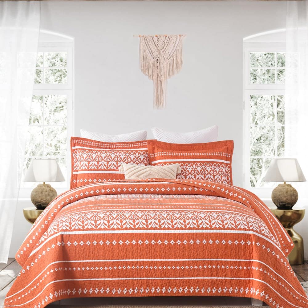 2. Patrón a Rayas Bohemio Eleve su habitación con nuestro juego de colcha boho naranja y blanco, que presenta patrones a rayas atemporales y una costura impecable. Perfecto para agregar un toque de estilo a su decoración de cabaña o granja.