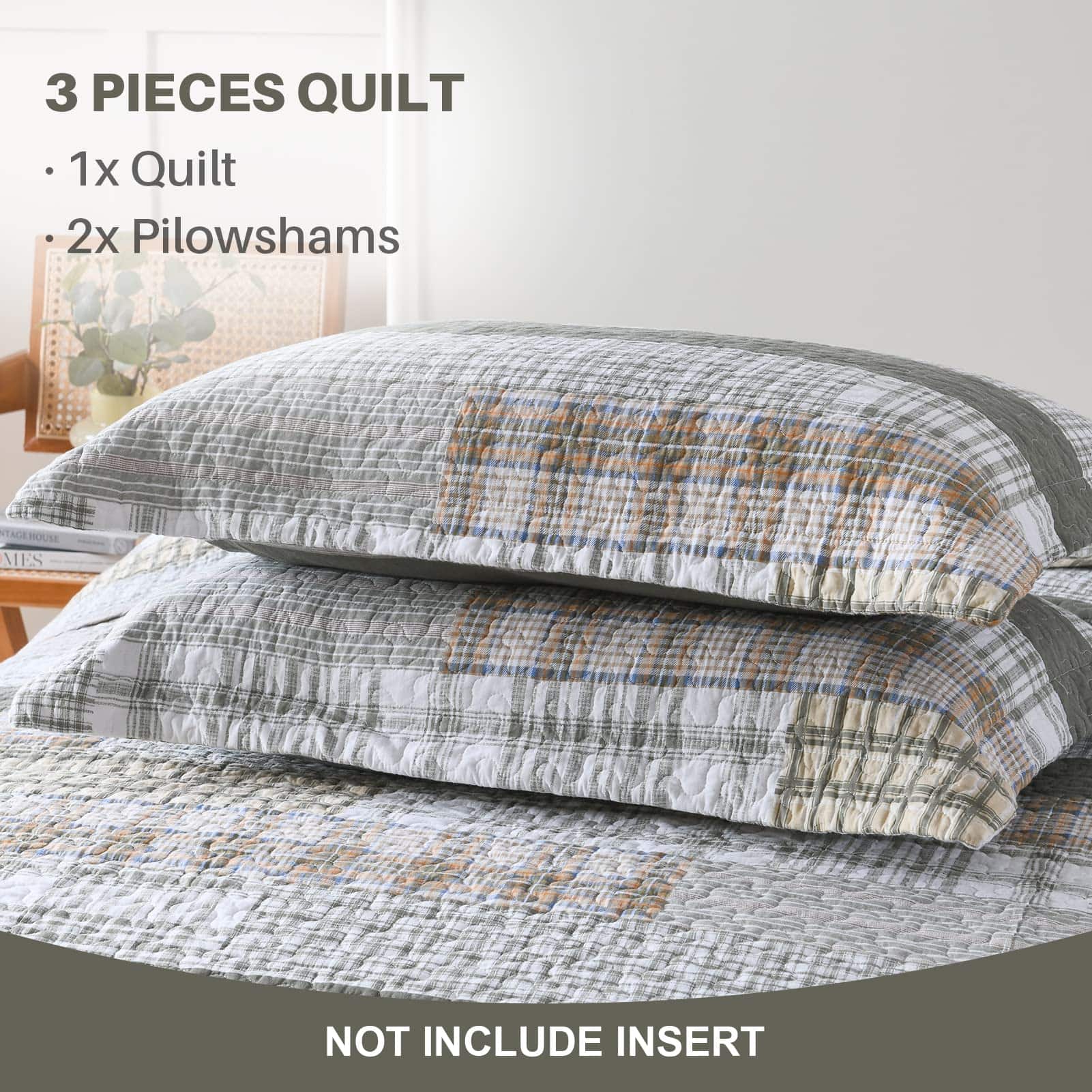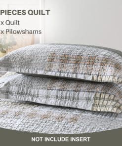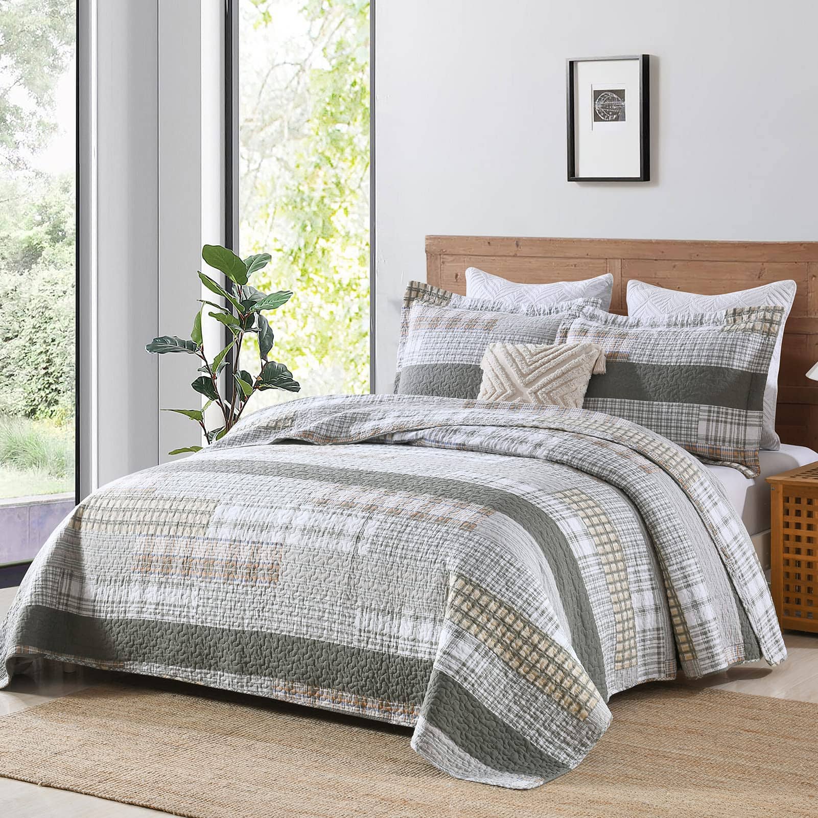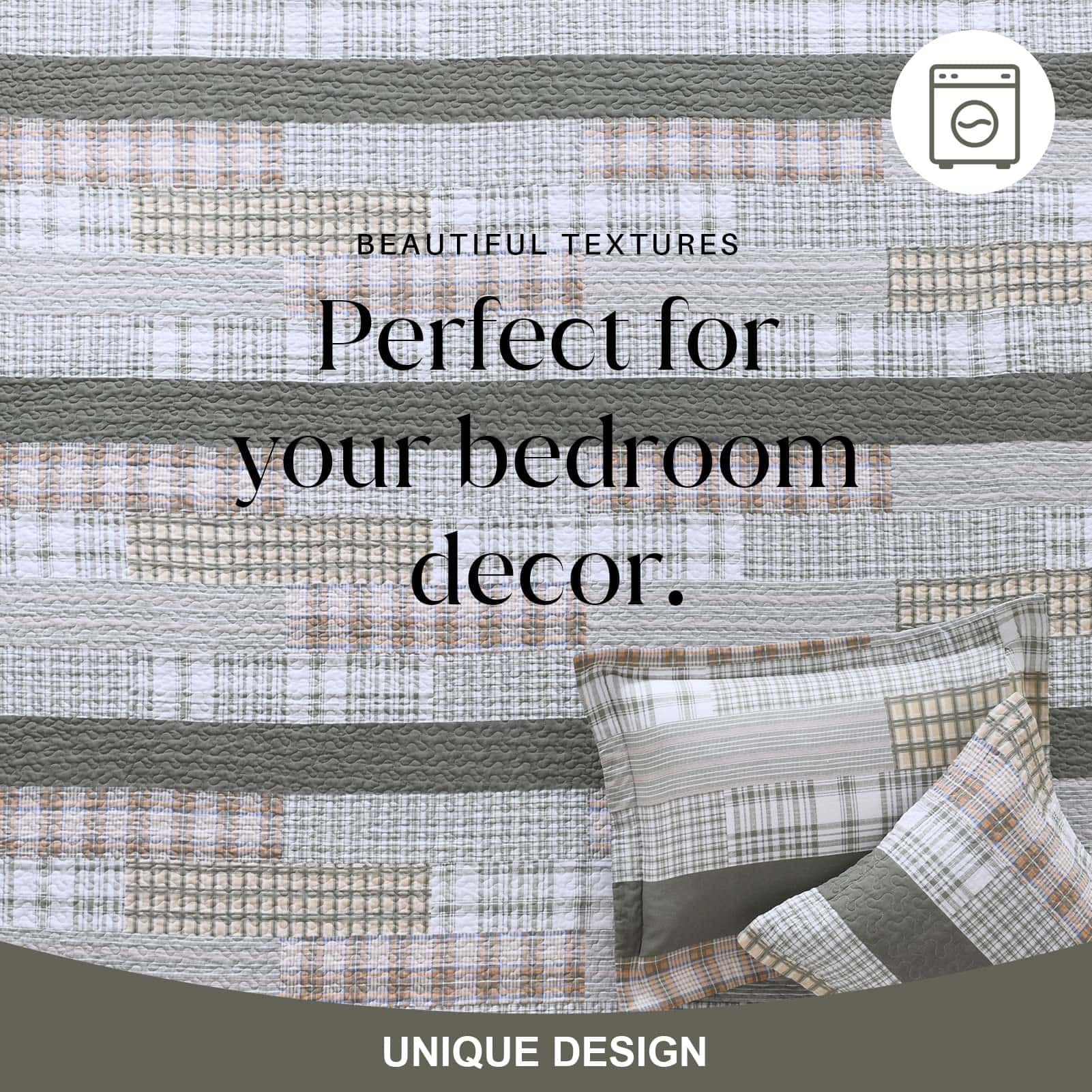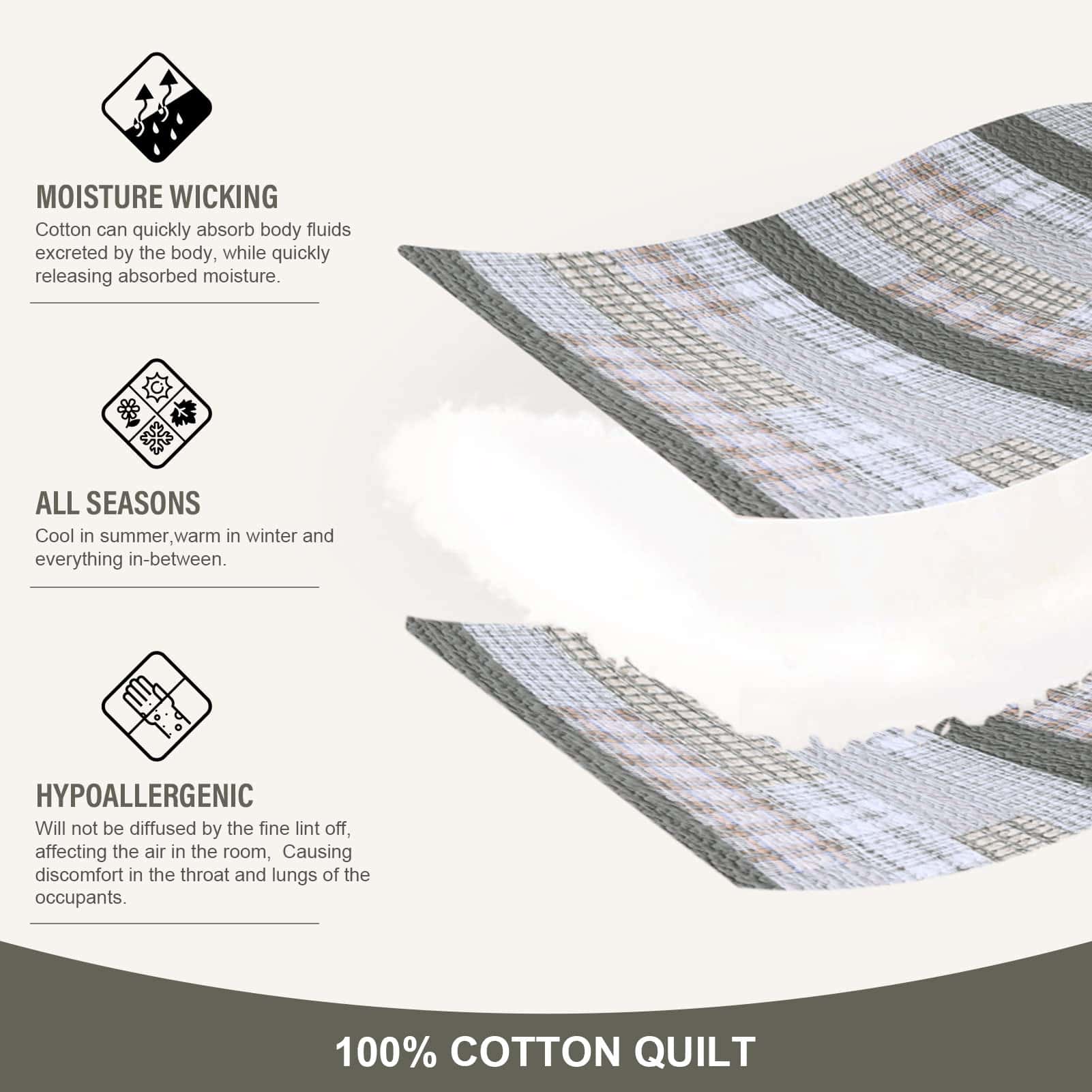 2. COLCHA TODA LA TEMPORADA Colcha de tamaño King en color gris verdoso y blanco, diseño a rayas de cuadros, diseñada para uso durante todo el año que puede abrigar como una manta en primavera y verano, como un juego de edredones en otoño e invierno.
