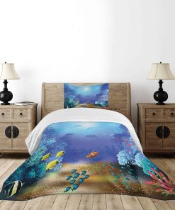 Colcha Lunarable Bajo el Agua, Arrecife de Coral, Pólipos,