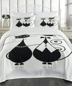 Colcha Lunarable de Boda, Sr. y Sra. Gato Monocromo Novios