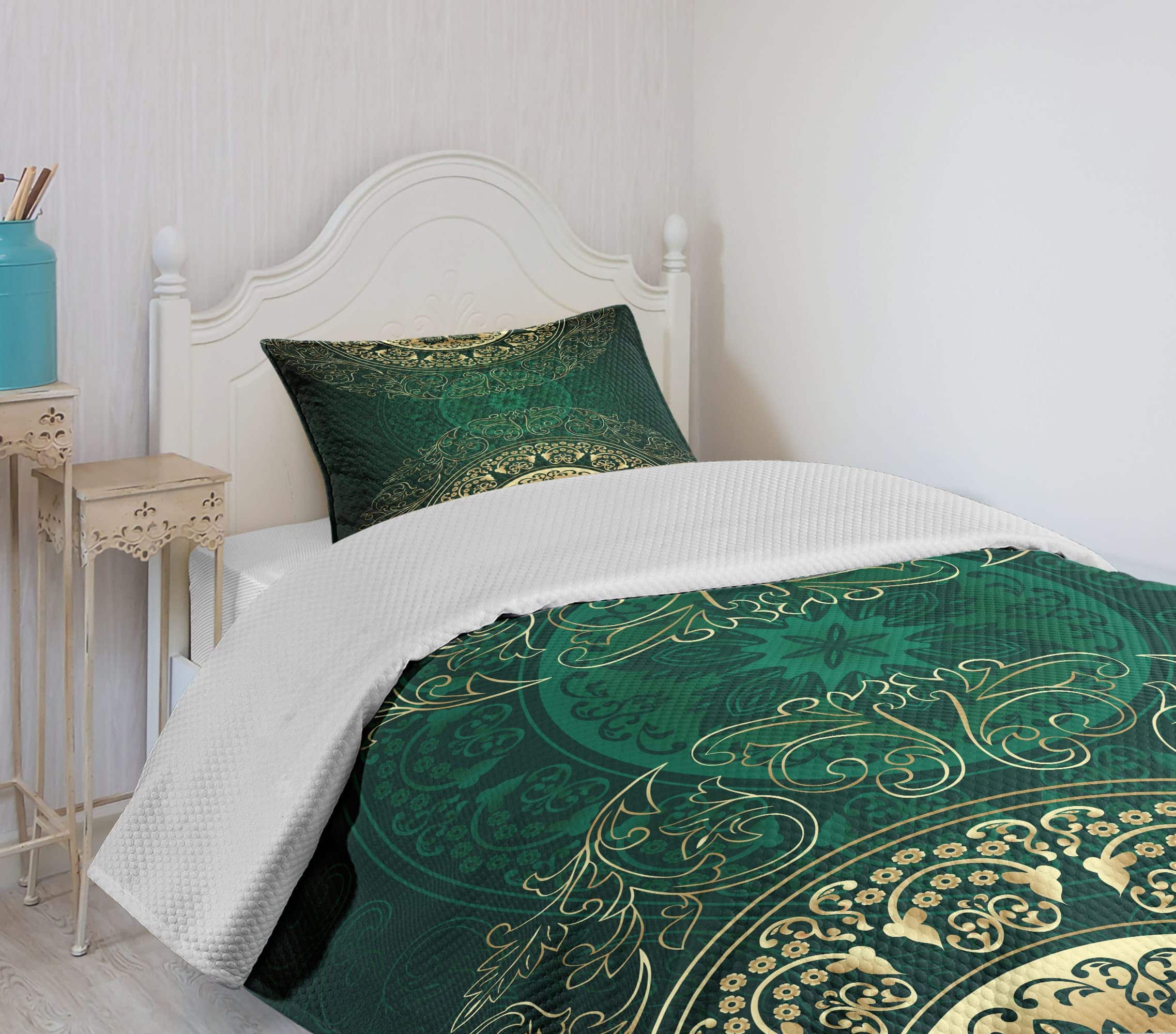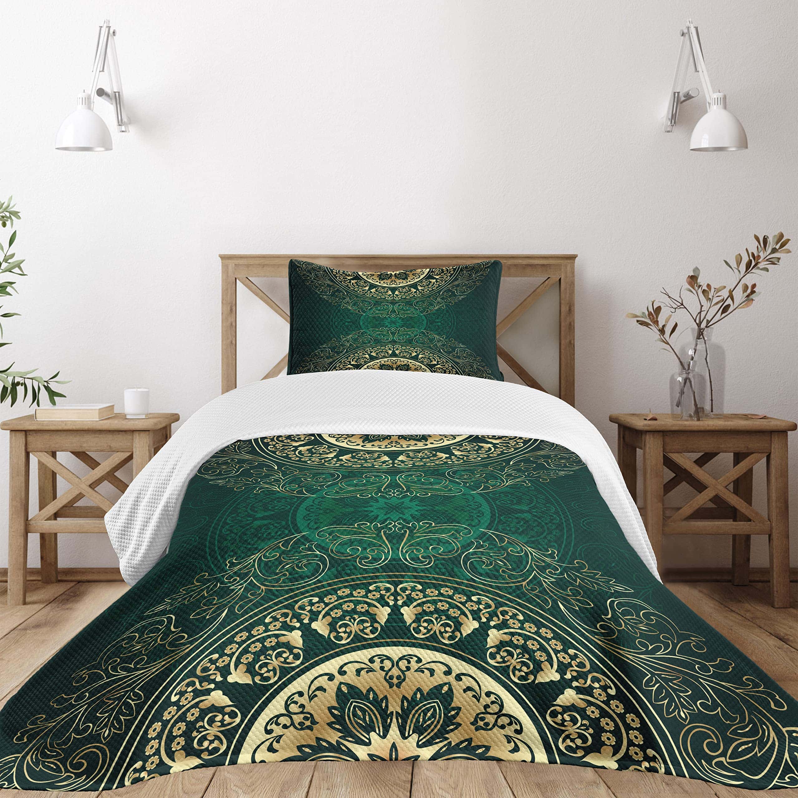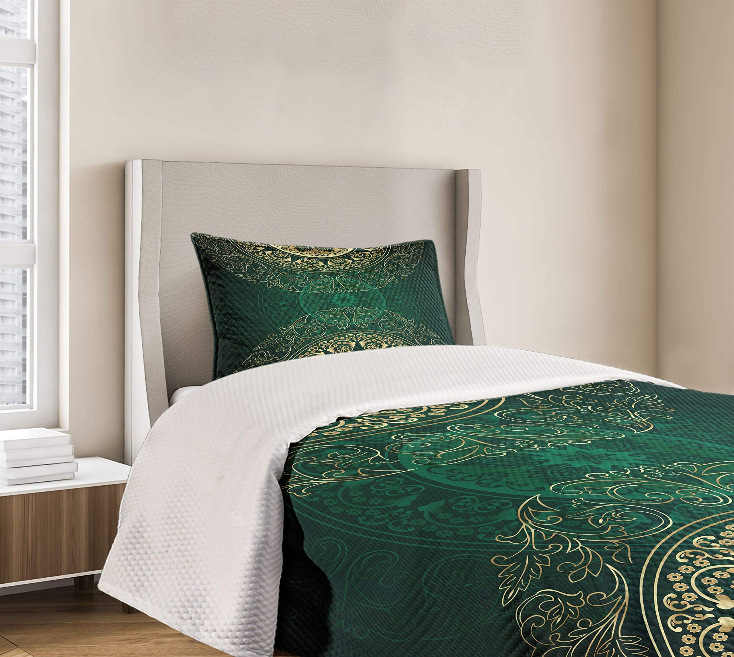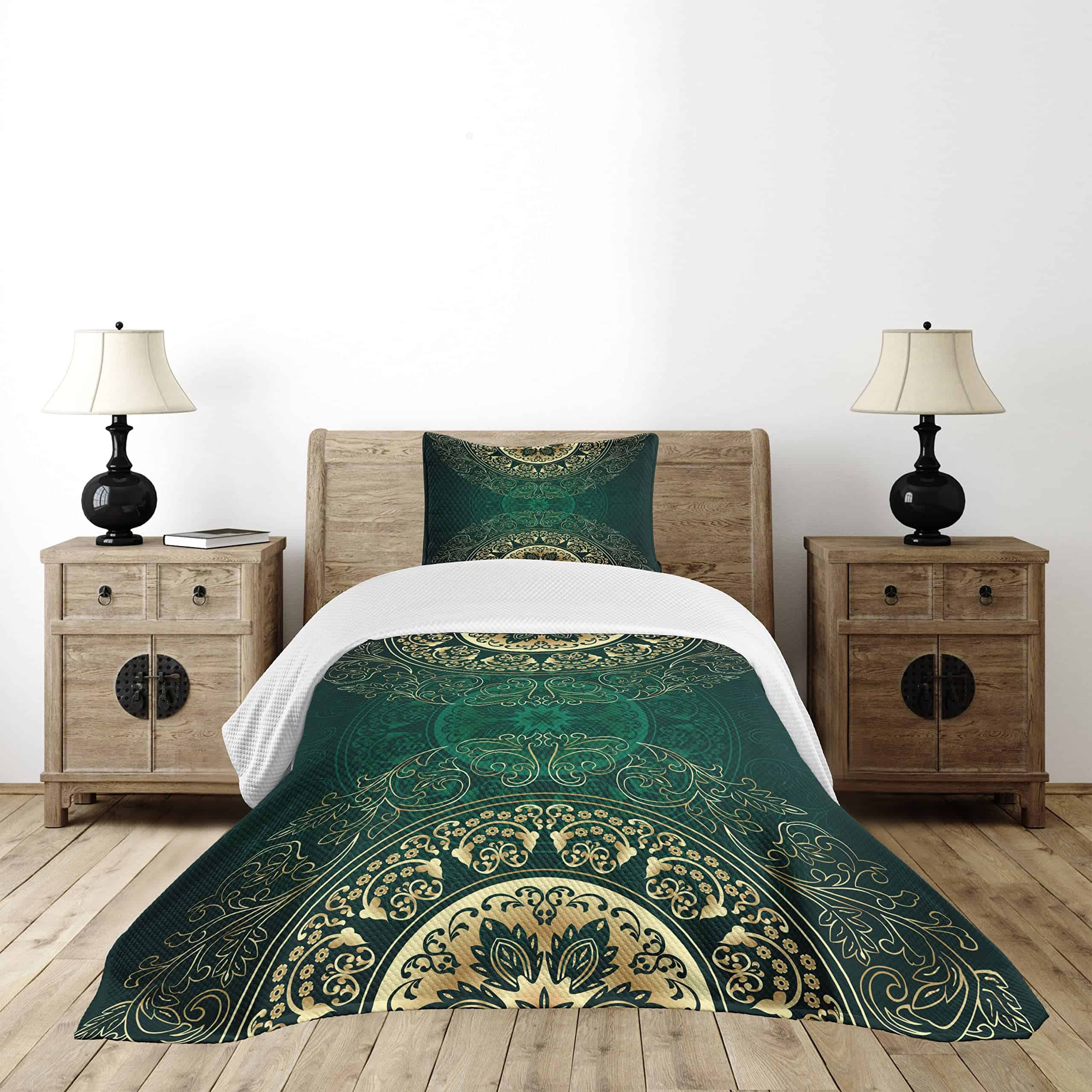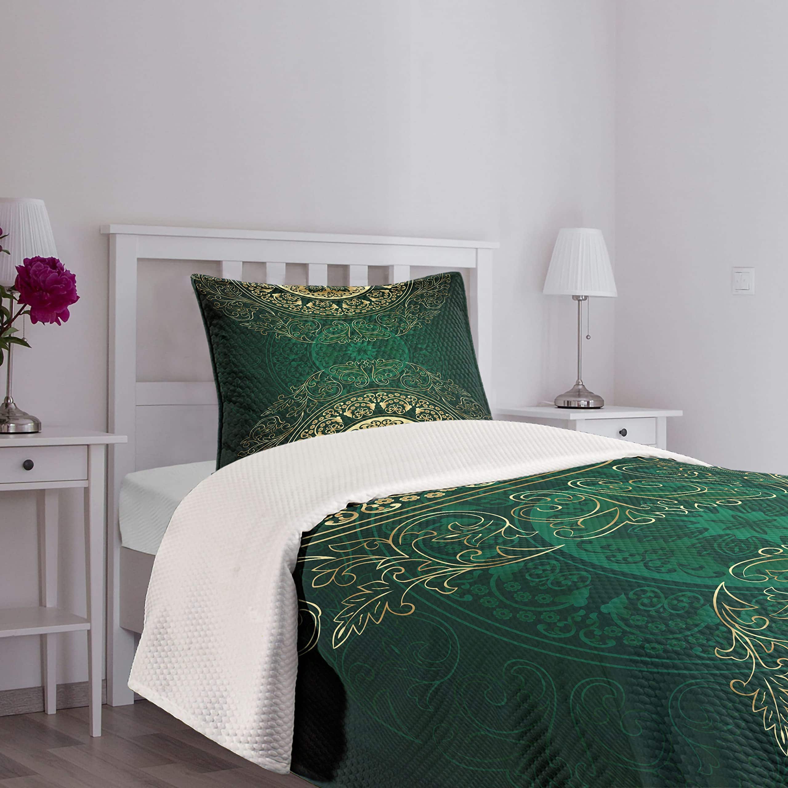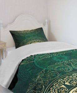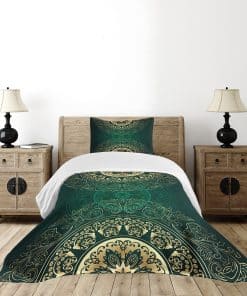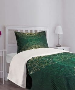 Colcha Lunarable de color verde cazador, Estilo mandala