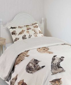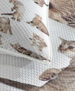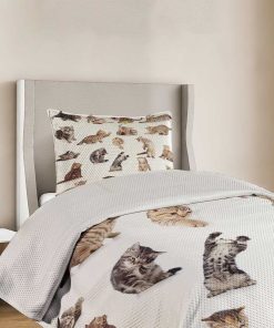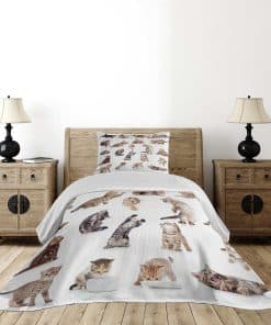 Luce esta colcha de gatos en tu dormitorio y disfruta de la comodidad y suavidad óptimas que proporciona. Hecha de poliéster suave de alta densidad cepillado doble para una suavidad óptima y comodidad final. El acolchado pesado y la tecnología knitted quilt hacen que esta colcha se mantenga en su lugar y pueda ser usada como manta. Fácil de lavar a máquina – ciclo frío, se puede secar en secadora. Planchar fácilmente y no se desvanece. La excelente costura y mano de obra hacen de esta colcha una opción duradera y elegante para tu dormitorio. Impreso con tecnología digital de última generación, la colcha y las fundas de almohada están impresas solo en el lado del frente.