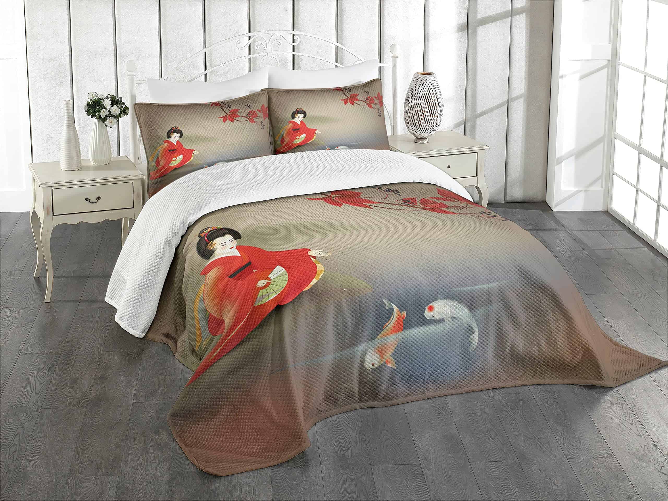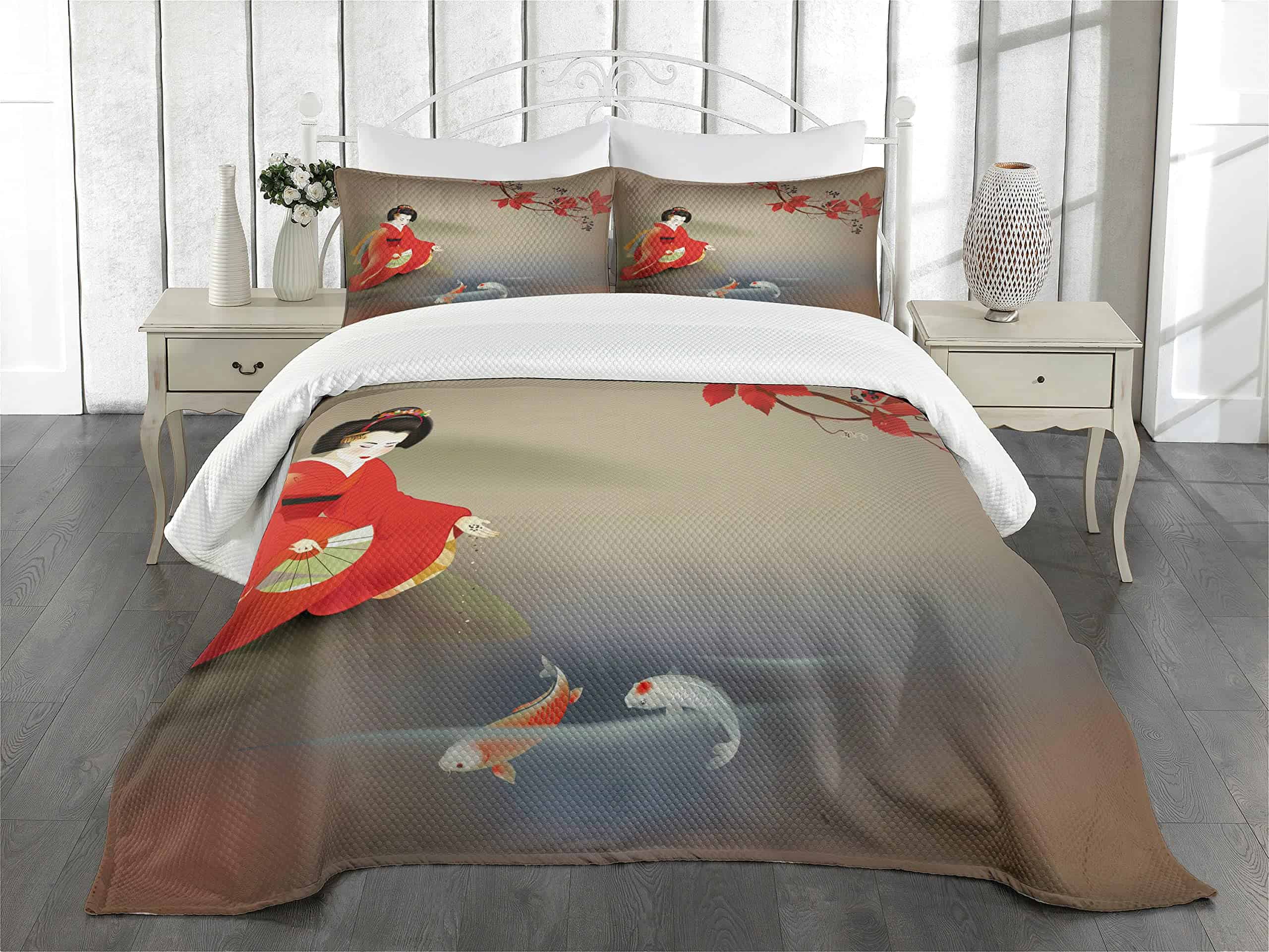 Colcha Lunarable de Peces Koi, Geisha Alimentando Bestia en