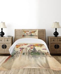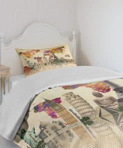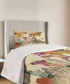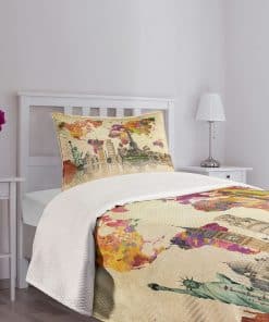 Monumentos del Mundo 7 Maravillas de Europa, Asia y América Mapa Abstracto Moderno, Colcha decorativa acolchada de 2 piezas con funda de almohada, Tamaño individual, Crema sepia. La colcha se imprime en TAMAÑO GRANDE. Material textil no demasiado delgado ni demasiado grueso. Para todas las estaciones. Sustancia respetuosa con el medio ambiente, no hace daño a la salud de su familia. Los colores vibrantes y la imagen nítida. Sin tintes que dañen la salud de su familia. Los geniales y elegantes motivos del mundo aportarán un toque fascinante a la decoración de su hogar. Estas prendas de cama son lavables a máquina. Utiliza frío, no secadora, no lejía. Perfecto para el descanso. Tu cómodo sueño está garantizado.