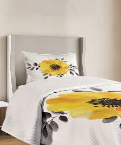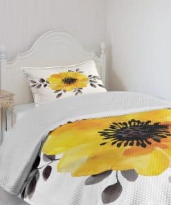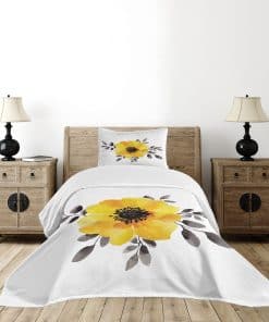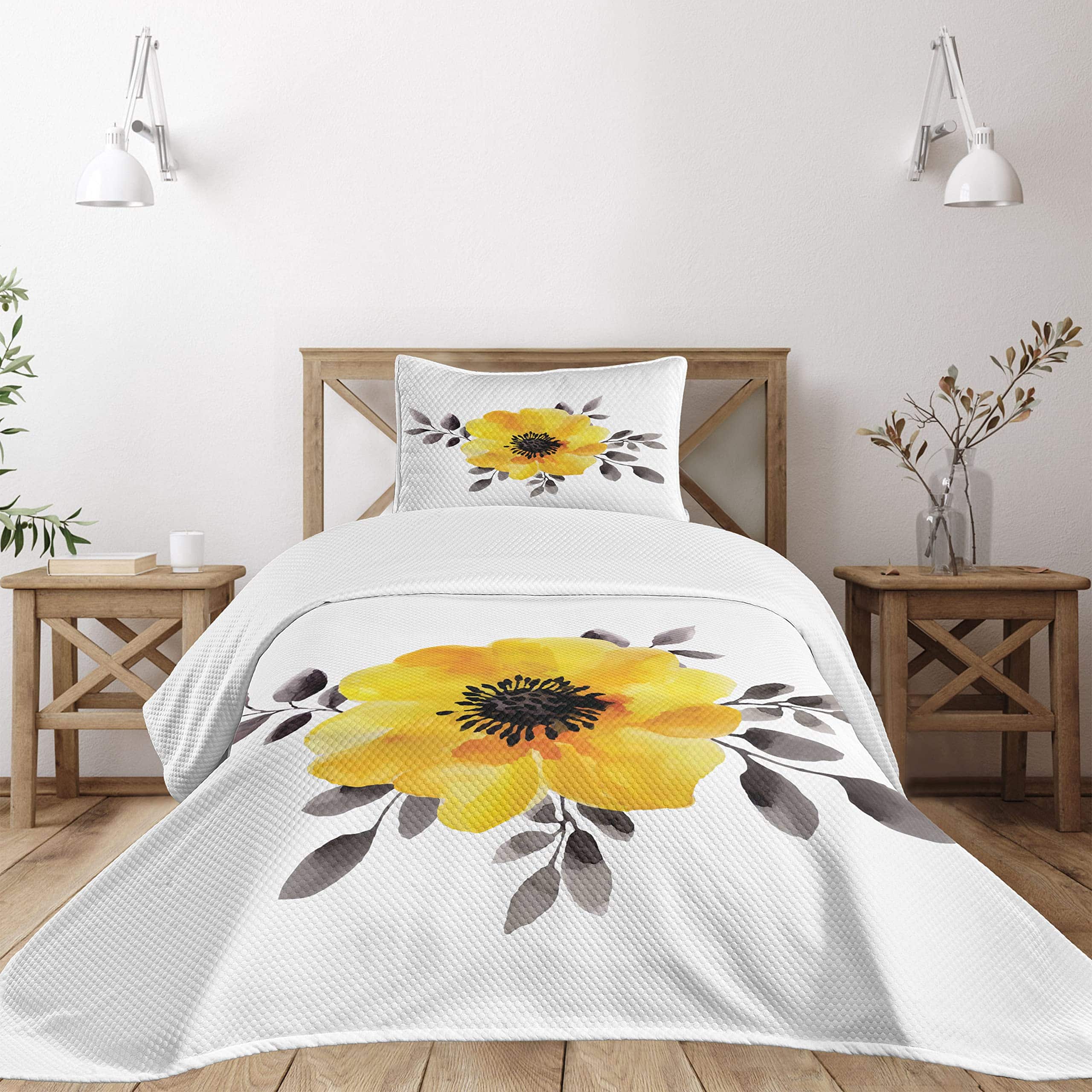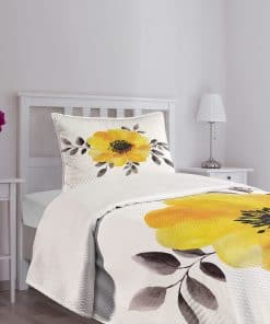La Colcha Lunarable presenta una hermosa imagen acuarela de una flor única y hojas en un diseño abstracto de arte moderno. Este juego de 2 piezas incluye una colcha decorativa acolchada y una funda de almohada a juego en tamaño individual. La colcha de tamaño individual tiene unas dimensiones de 68″ X 88″ y está acompañada por una funda de almohada de 30″ X 20″. Esta colcha es extra grande, proporcionando una gran cobertura a lo largo de los lados de la cama. Está hecha de poliéster suave de doble cepillado de alta densidad para brindar suavidad óptima y máxima comodidad. Además, es resistente y no se cae fácilmente de la cama, pudiendo también ser utilizada como una manta. La colcha tiene un peso pesado y está diseñada con tecnología de punto de alta tecnología. Es lavable a máquina en ciclo frío, segura para la secadora, fácil de planchar y no se decolora. La colcha y las fundas de almohada están impresas con tecnología digital de última generación, siendo la impresión solo en el LADO DELANTERO para un acabado perfecto.