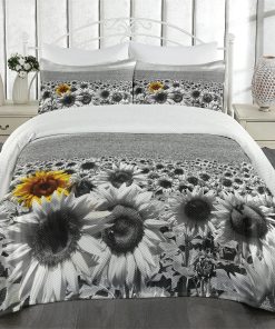 Colcha Lunarable Moderna, Campo de Girasoles Blanco y Negro