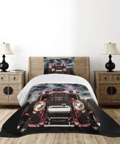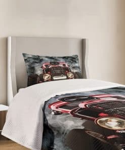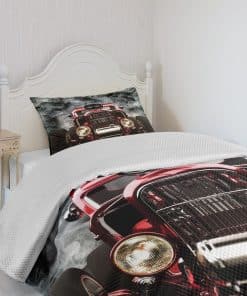 La colcha Lunarable Clásica para Cama presenta un diseño único con un tema de velocidad y emoción, con un fondo de humo de un vehículo vintage. Este juego de colcha decorativa de 2 piezas incluye una colcha Twin de 68″ x 88″ y una funda de almohada de 30″ x 20″. La tela está hecha de poliéster suave de doble cepillado de alta densidad para una suavidad óptima y un confort supremo. Su peso pesado asegura que no se caiga fácilmente de la cama y se puede usar como manta. La colcha está impresa con tecnología digital de última generación y las colcha y fundas de almohada están impresas solo en el lado frontal. Esta colcha es lavable a máquina en ciclo frío, segura para secadora y fácil de planchar, sin decoloración garantizada. Con excelente costura y mano de obra, este juego de colcha es ideal para agregar un toque de estilo y emoción a cualquier habitación.