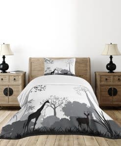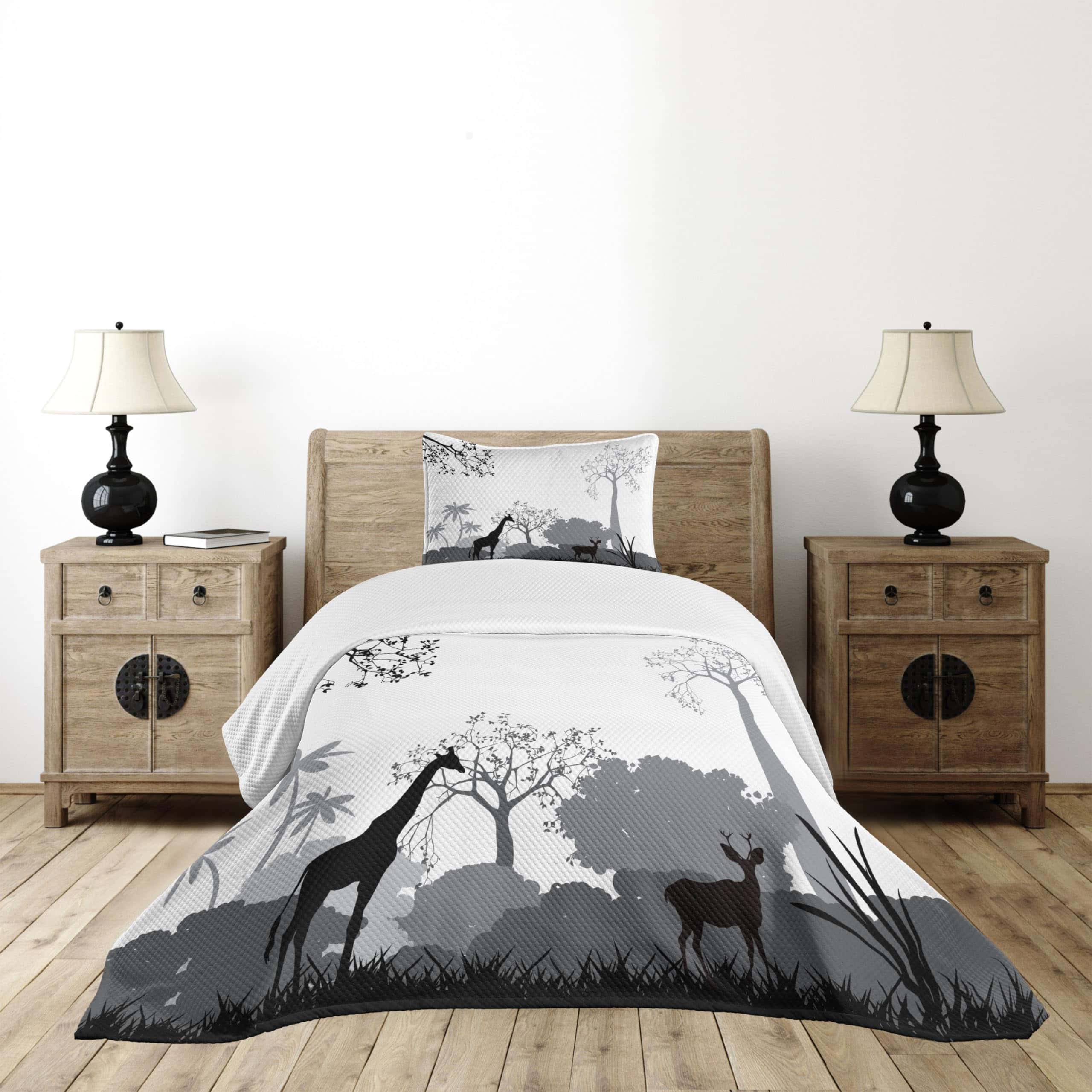 Colcha Lunarable Savannah, Silueta en Escala de Grises de