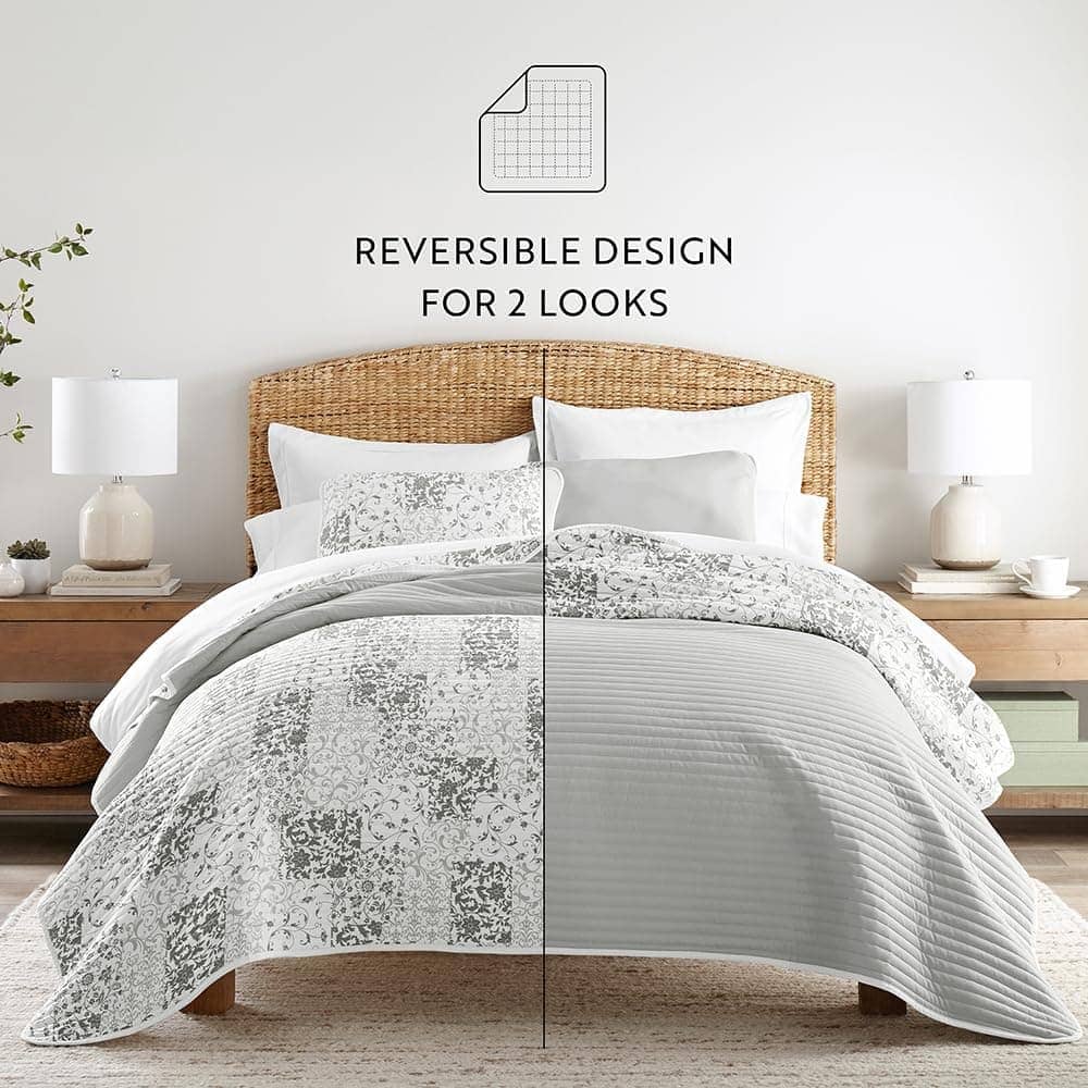 Dale a tu habitación una nueva adición cómoda con este conjunto de colcha y funda de almohada de microfibra reversible súper suave. Lo hemos rellenado generosamente con un relleno artificial, y cada pieza está cepillada doblemente para darle esa sensación súper suave y acogedora. Los hermosos y sutiles pespuntes acolchados añaden dimensión y un toque magnífico a cualquier dormitorio. Hilado a partir de nuestros hilos de primera calidad, este conjunto es el doble de resistente que el algodón, resistente a las arrugas y una opción perfecta para aquellos con alergias o piel sensible. La reversibilidad le da a cada lado su propio aspecto único. Disponible en una variedad de hermosos diseños de diseñador, haciéndolo fácil de refrescar cualquier dormitorio.