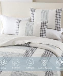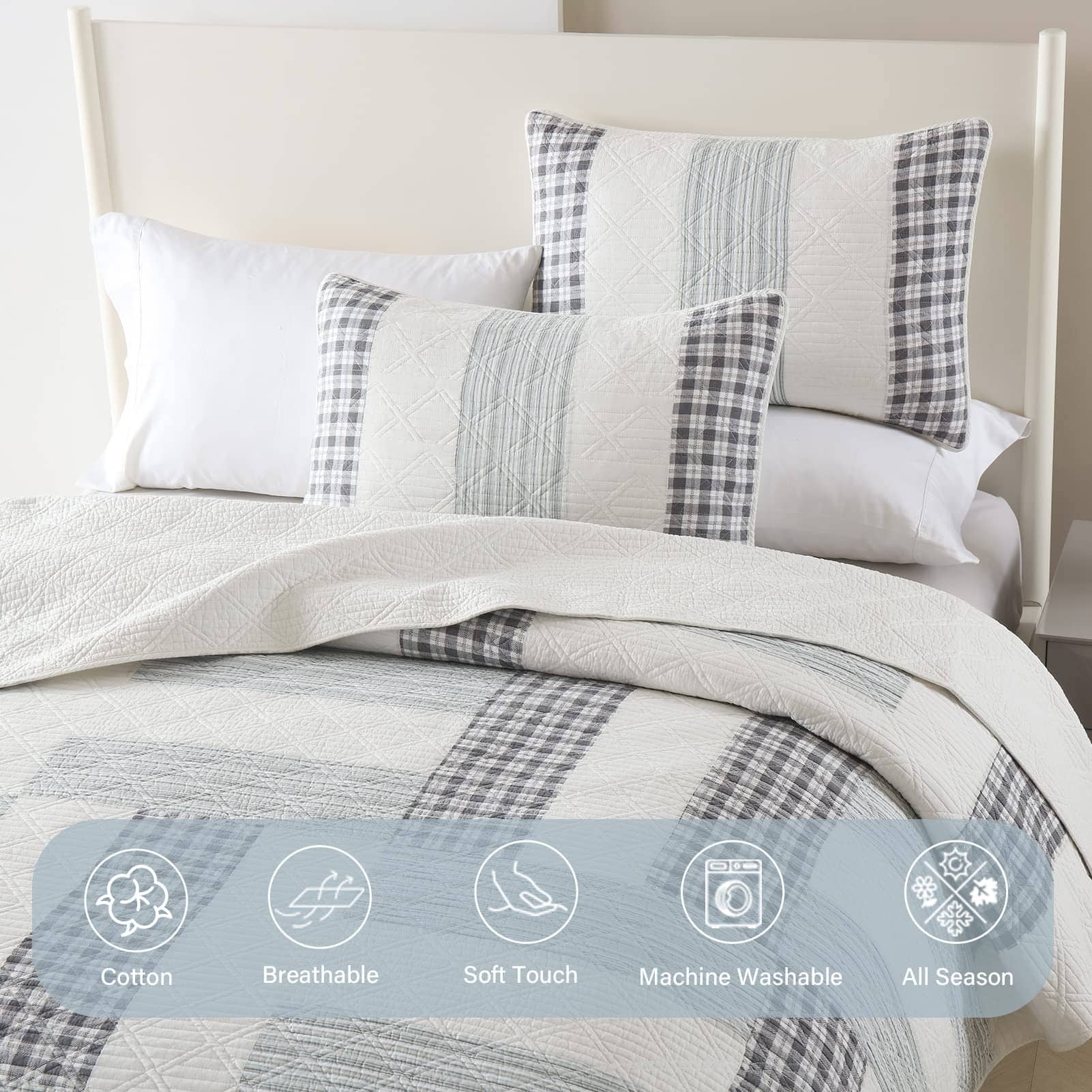 2. Colcha de Patchwork Las colchas queen size adoptan la tecnología de patchwork real, decorando tu cama con un hermoso patrón de cuadros y rayas en negro, gris, blanco, que combinan perfectamente con la decoración de tu habitación. Es una buena elección de regalo para tus padres y amigos.