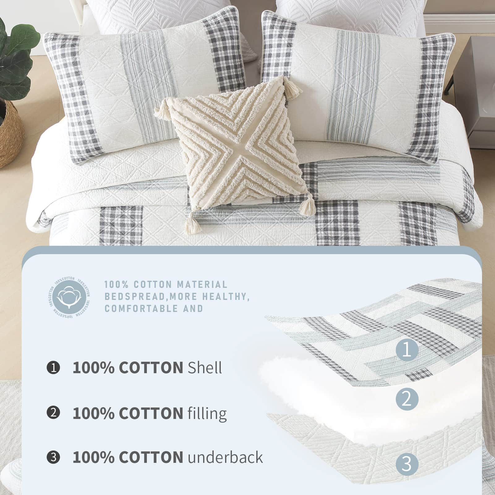 1. Colcha de Algodón La colcha queen está hecha de 100% algodón, más saludable y transpirable. Suavidad, amigable con la piel y duradera.