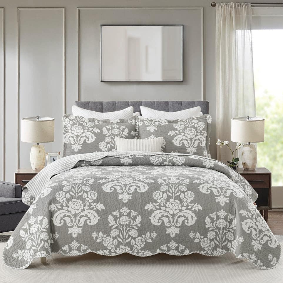 3. Colcha acolchada ligera: Elaborada con algodón 100% ligero y suave, nuestro juego de colcha queen ofrece un confort inigualable. Proporciona calor sin pesar, permitiéndole disfrutar de su abrazo acogedor durante los cálidos veranos y frescos inviernos.