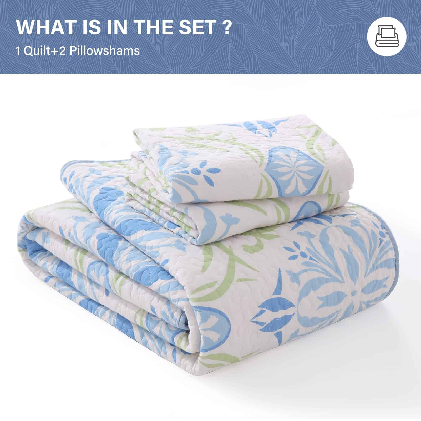 2. Ampliamente Aplicable y Decorativo: Este juego de colcha clásico diseñado con patrones florales hace que tu habitación sea luminosa y acogedora. Este juego de colcha decorativa también puede combinar fácilmente con la decoración de tu dormitorio, sala de estar, habitación principal, habitación de invitados, estudio, dormitorio y vehículos recreativos.