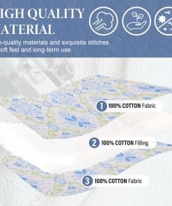 1. 100% Algodón Natural: La tela y el relleno están hechos de 100% algodón natural, es más suave y saludable, más transpirable y respetuoso con la piel. También es una buena opción para personas con constitución alérgica o que tienden a sudar más al dormir.