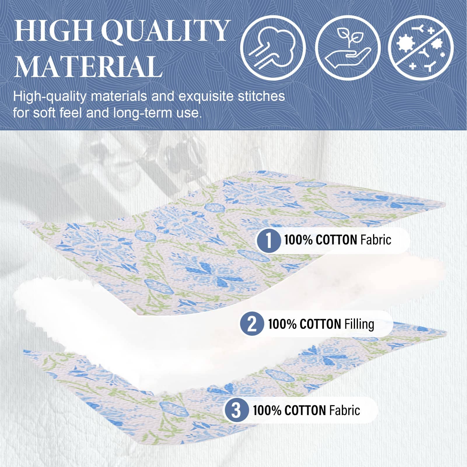 3. Uso en Todas las Estaciones: Las costuras ordenadas y apretadas garantizan un uso a largo plazo. El diseño de tres capas y el relleno de algodón 100% en el interior hacen que este juego de colcha sea ligero pero cálido, adecuado para primavera, verano, otoño/invierno y se puede utilizar como juego de colcha, conjunto de colcha, cubrecama y juego de edredón. Se puede usar solo o con una manta o edredón.