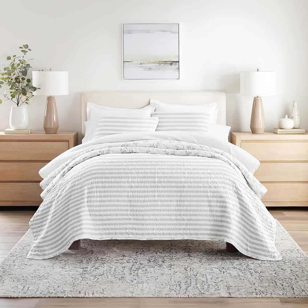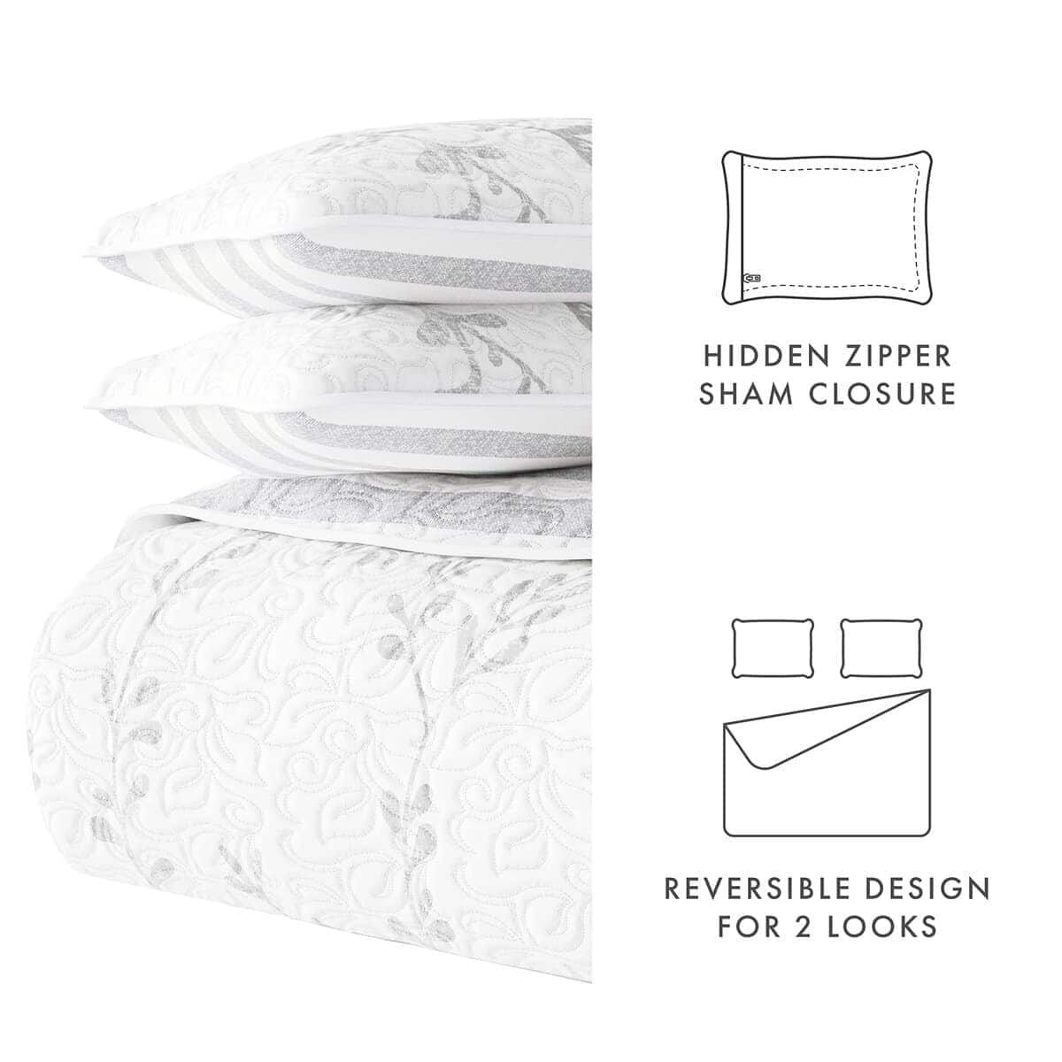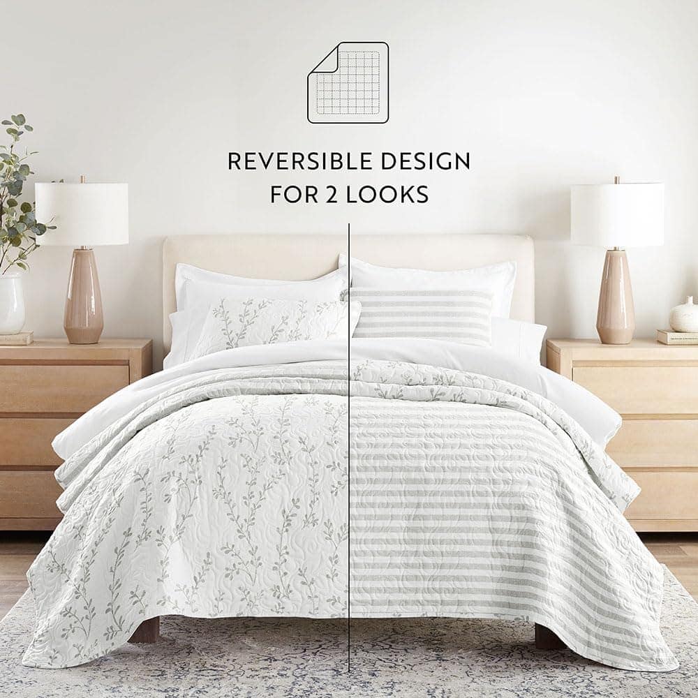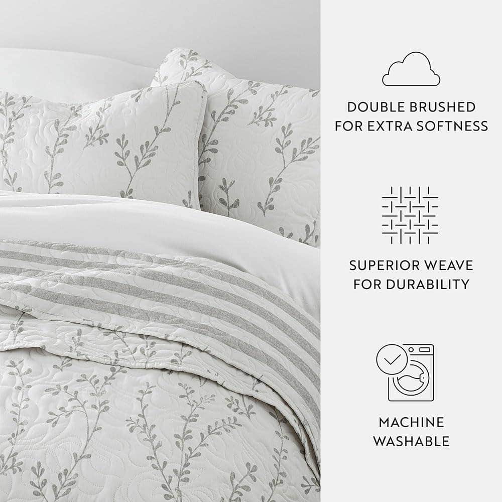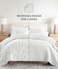 Dale a tu habitación una nueva y acogedora adición con este juego de colcha y almohada reversible de microfibra súper suave. Lo hemos rellenado generosamente con fibra sintética, y cada pieza está cepillada por ambos lados para darle esa sensación súper suave y acogedora. Los hermosos y sutiles acolchados agregan dimensión y un toque precioso a cualquier dormitorio. Hilado a partir de nuestras fibras premium, este set es el doble de resistente que el algodón, resistente a las arrugas y una opción perfecta para aquellos con alergias o piel sensible. La reversibilidad le da a cada lado su propio aspecto único. Disponible en una variedad de hermosos diseños de diseñador, lo que facilita refrescar cualquier dormitorio.