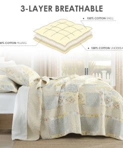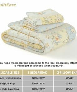 Versatilidad para Todas las Estaciones – Las puntadas ordenadas y ajustadas garantizan un uso a largo plazo. Puede usarse solo o con manta o edredón. Úsalo como tu cubierta de cama principal o como una de las capas. La colcha de algodón es una adición versátil a tu colección de ropa de cama.