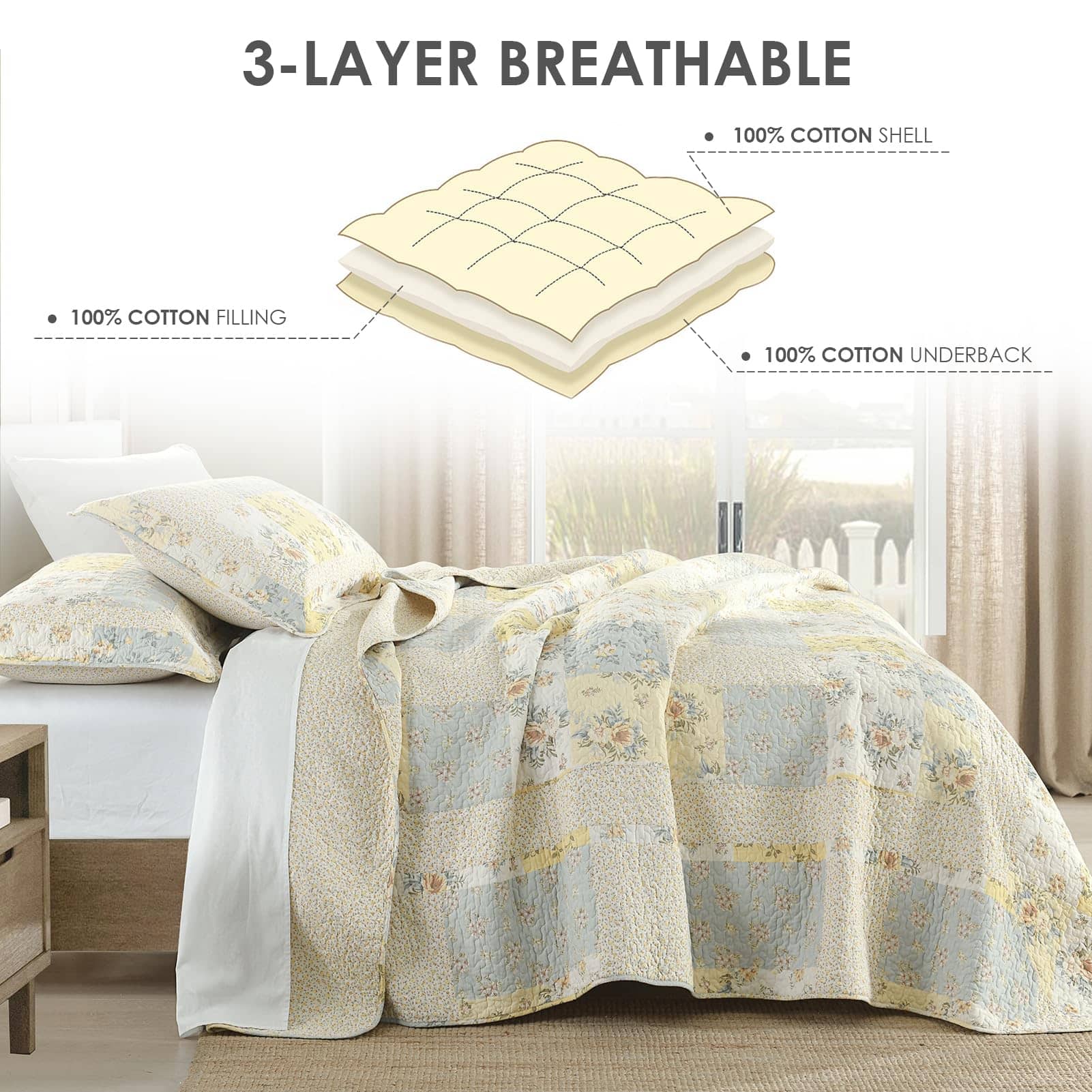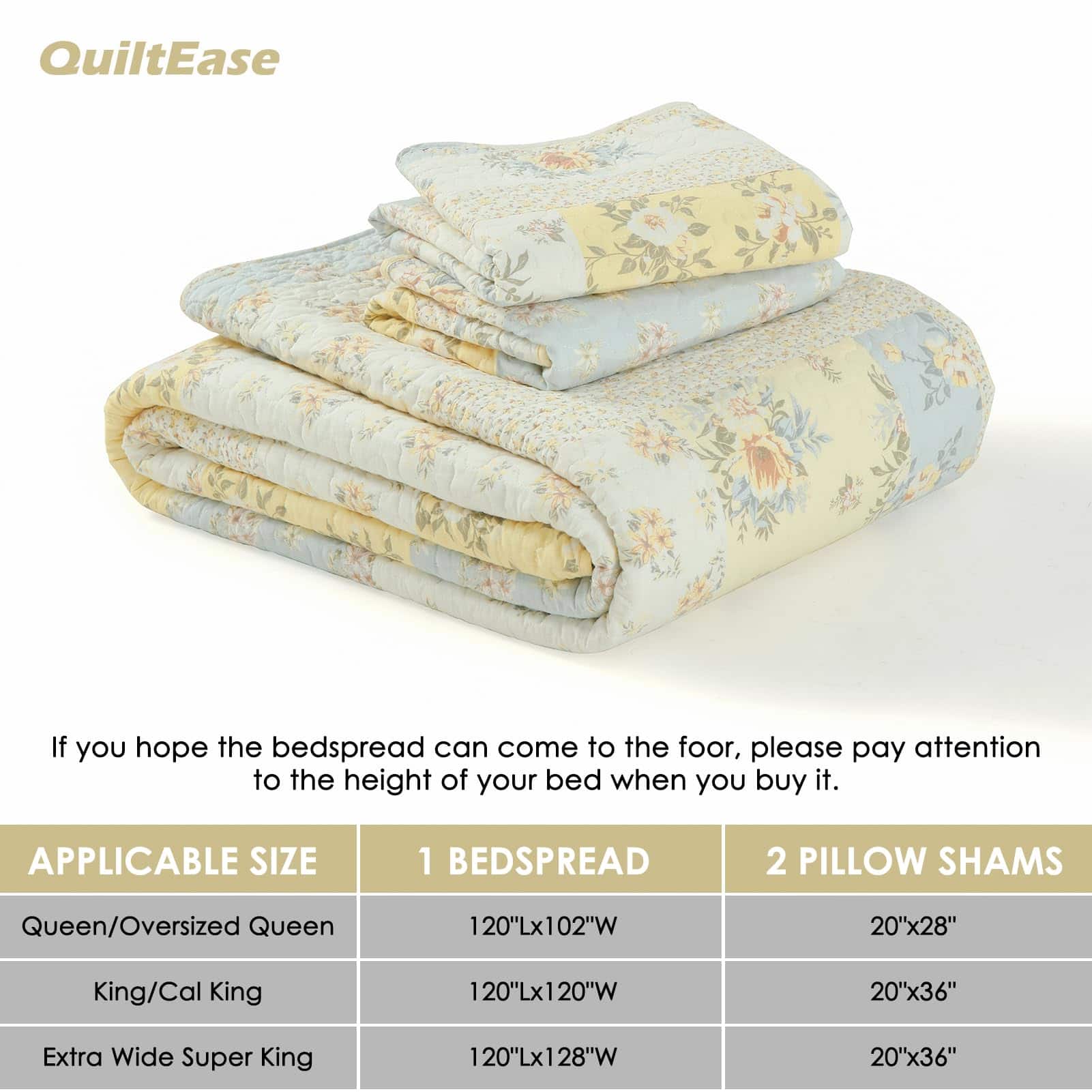 Juego de Colcha Extra Ancho Súper King de 3 Piezas Incluye – Incluye 1 colcha: 120″L x 128″W; 2 fundas de almohada: 20″ x 36″. El diseño de tres capas y el relleno de algodón al 100% hacen que este juego de colchas acolchadas sea ligero pero cálido, adecuado para primavera, verano, otoño, invierno y se puede usar como juegos de colchas, juegos de colchas extragrandes, juego de colcha, cubrecama, funda de cama y juego de edredón.